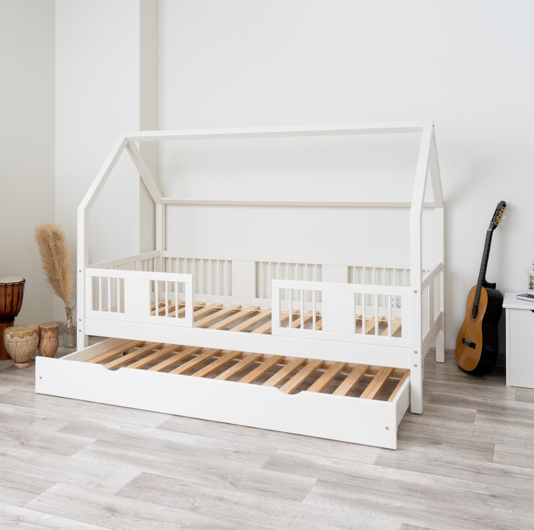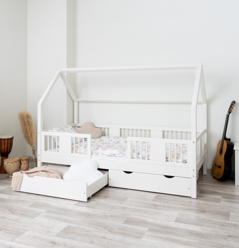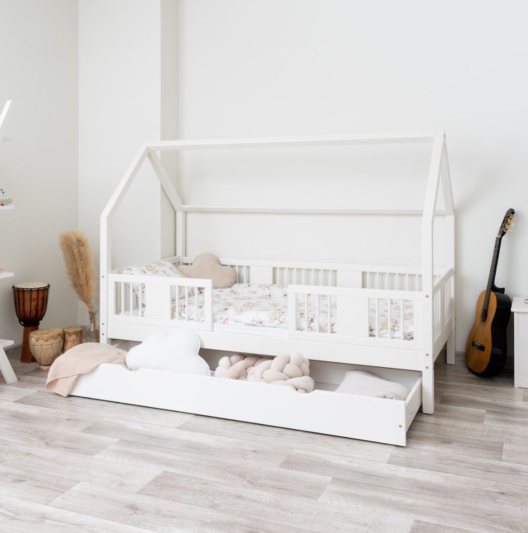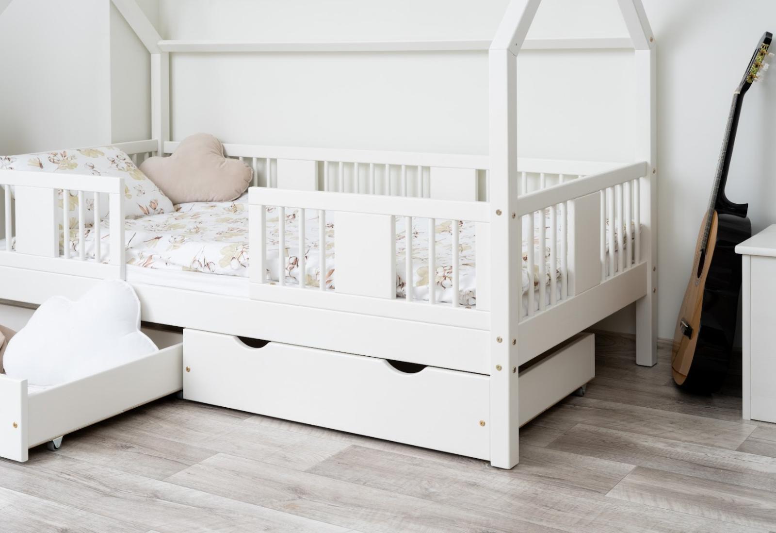 Táto detská posteľ je vytvorená tak, aby ušetrila priestor v detskej izbe. K posteli je možné tiež dokúpiť praktický a priestranný šuplík z masívu v niekoľkých variantoch:
