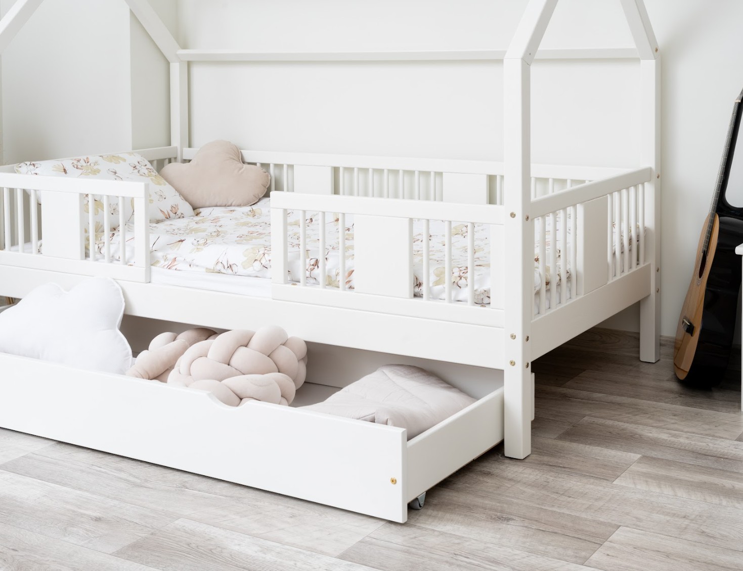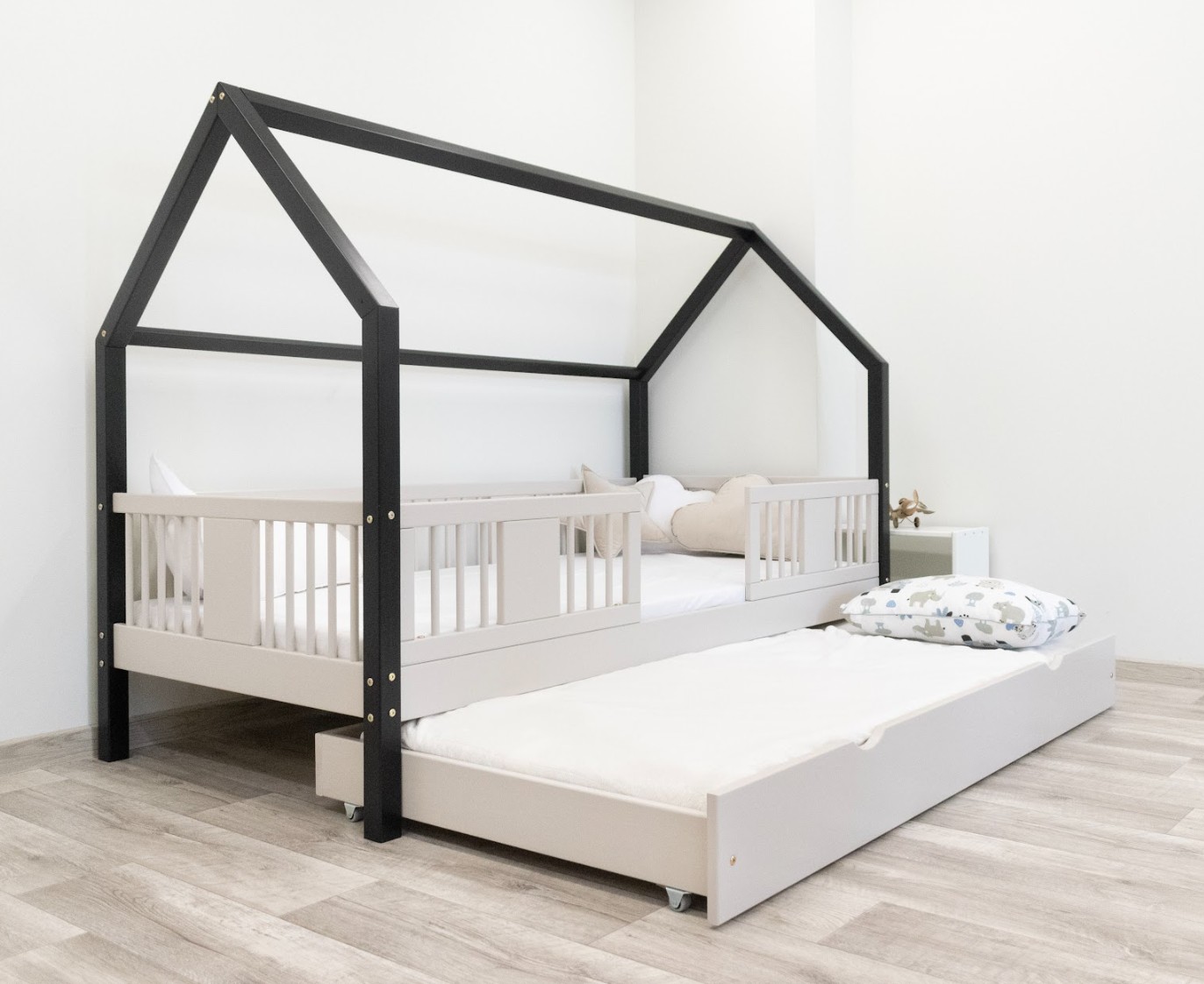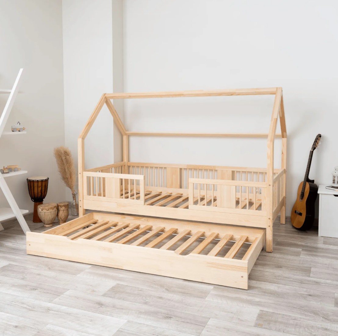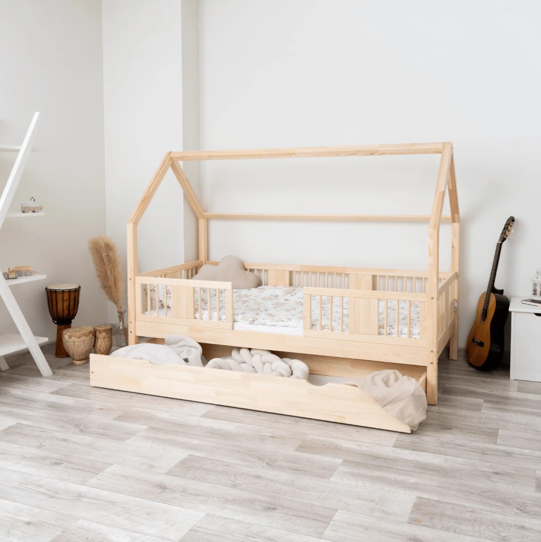 Táto detská posteľ je vytvorená tak, aby ušetrila priestor v detskej izbe. K posteli je možné tiež dokúpiť praktický a priestranný šuplík z masívu v niekoľkých variantoch: