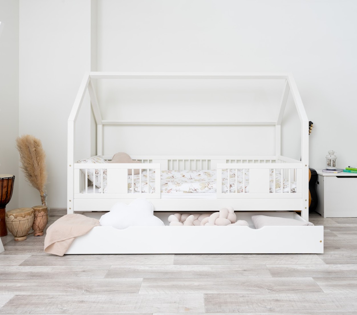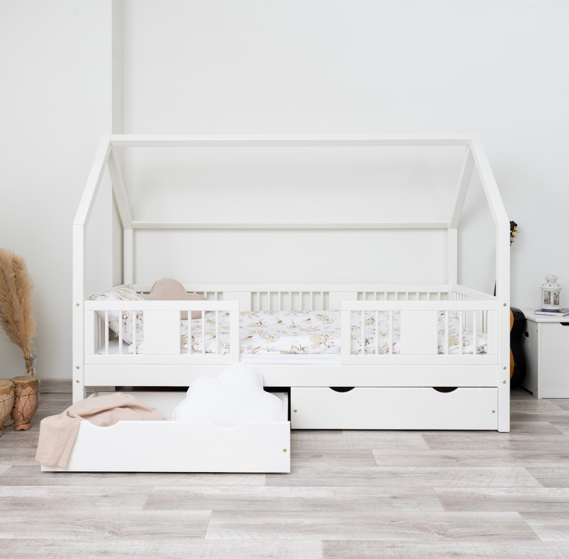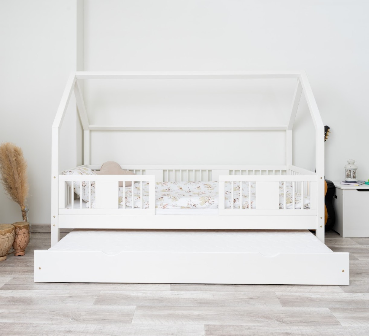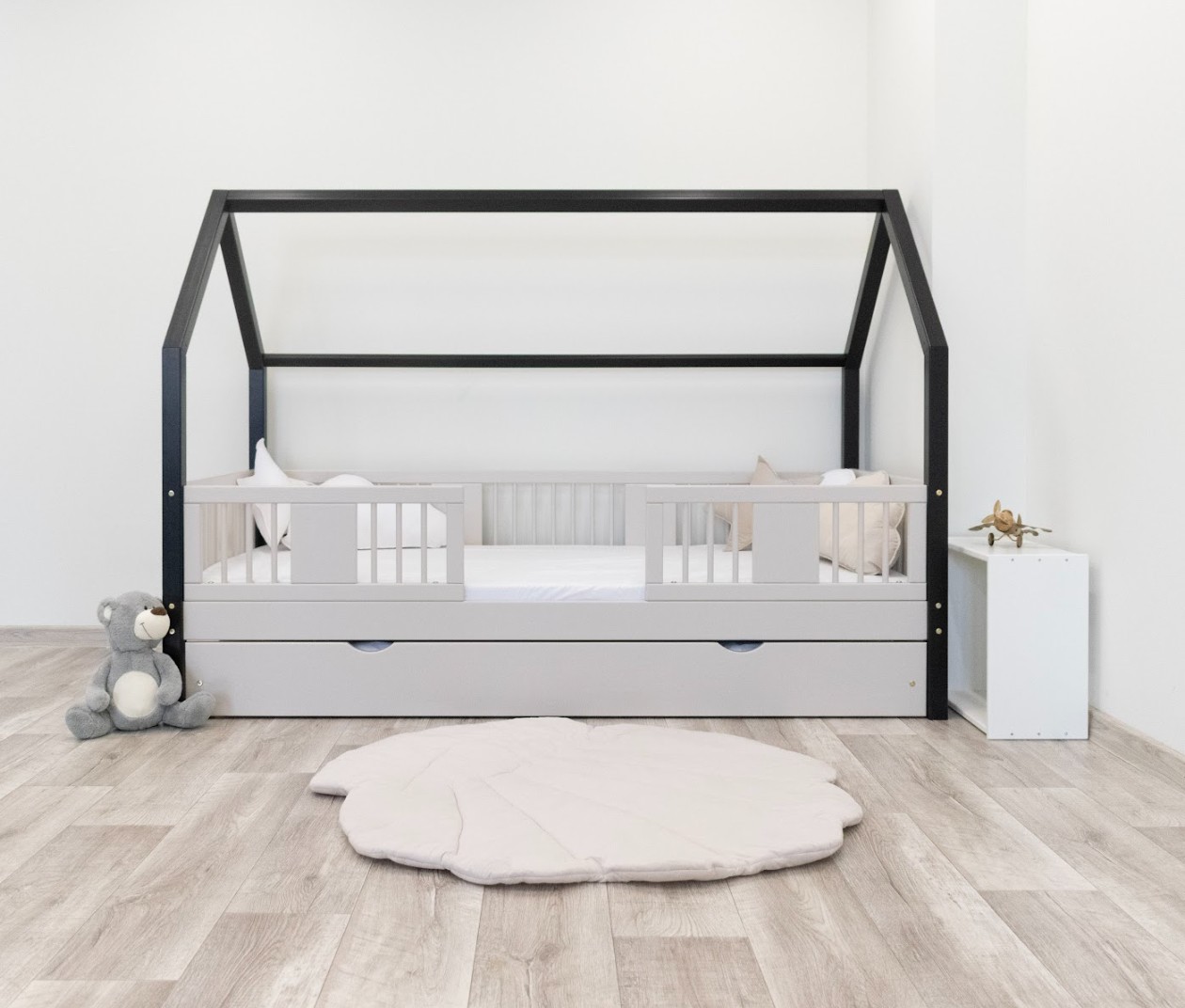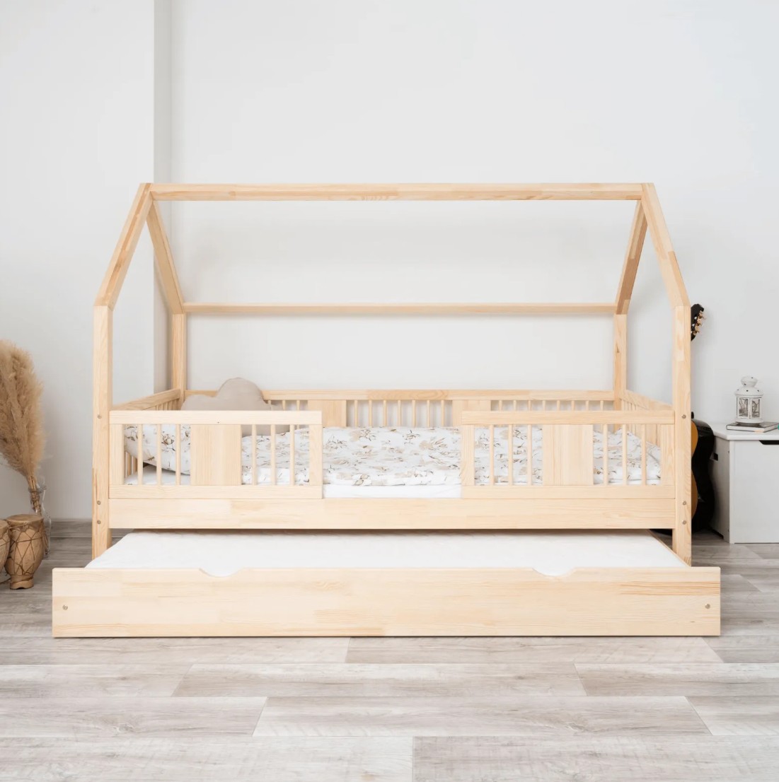 Zvýšený rám, vysoký 20 cm, dodáva posteli ďalšiu funkčnosť. Pod ňou je možné umiestniť priestrannú zásuvku, ktorá pomôže udržať detskú izbu upratanú. K dispozícii sú rôzne možnosti: jedna veľká zásuvka, dve menšie zásuvky a zásuvka s funkciou spania, ktorá vám umožní jednoducho premeniť jednolôžko na priestor na spanie pre dve deti. Toto je ideálne riešenie pre menšie miestnosti, kde záleží na každom centimetri priestoru. Jej stabilná drevená konštrukcia unesie zaťaženie až 90 kg a jej neutrálny dizajn sa hodí ako do malej detskej izby, tak do izby tínedžera. Vďaka svojej jednoduchosti a všestrannosti sa ľahko prispôsobí rôznym štýlom interiéru – od minimalistického po klasický. Každá posteľ je dodávaná s robustným rámom z borovicového dreva a kompletnou sadou montážneho materiálu. Posteľ LUNA 20 bude vyzerať krásne v dievčenských aj chlapčenských izbách.