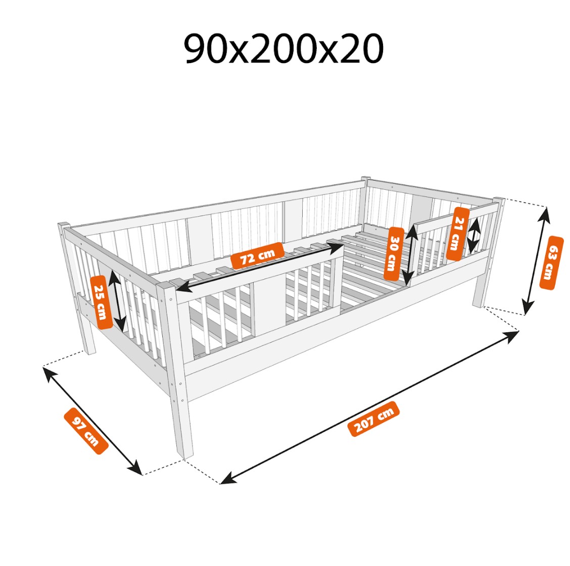 Detská posteľ z masívu borovice LUNA 20 - 200x90 cm