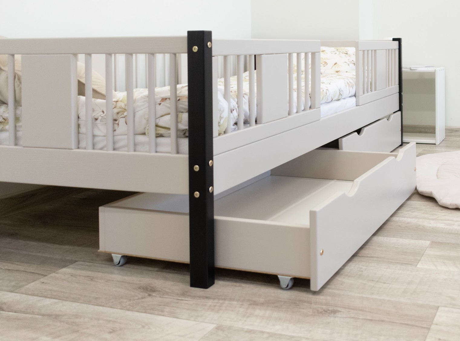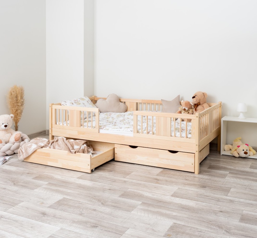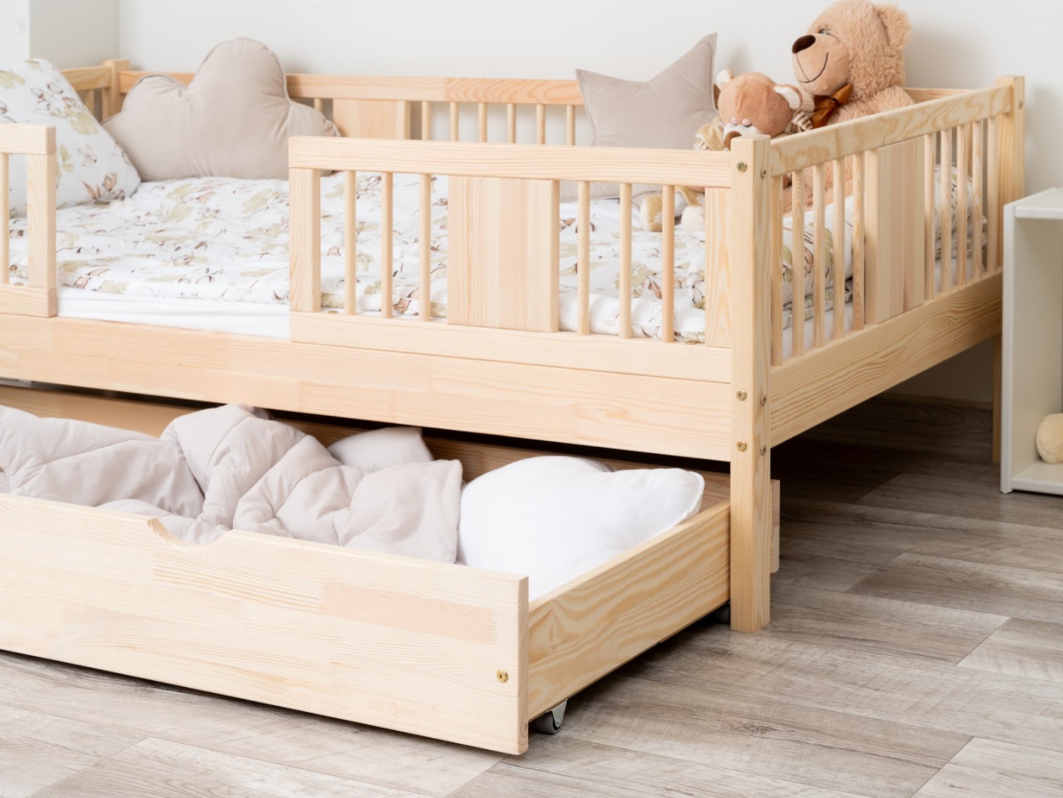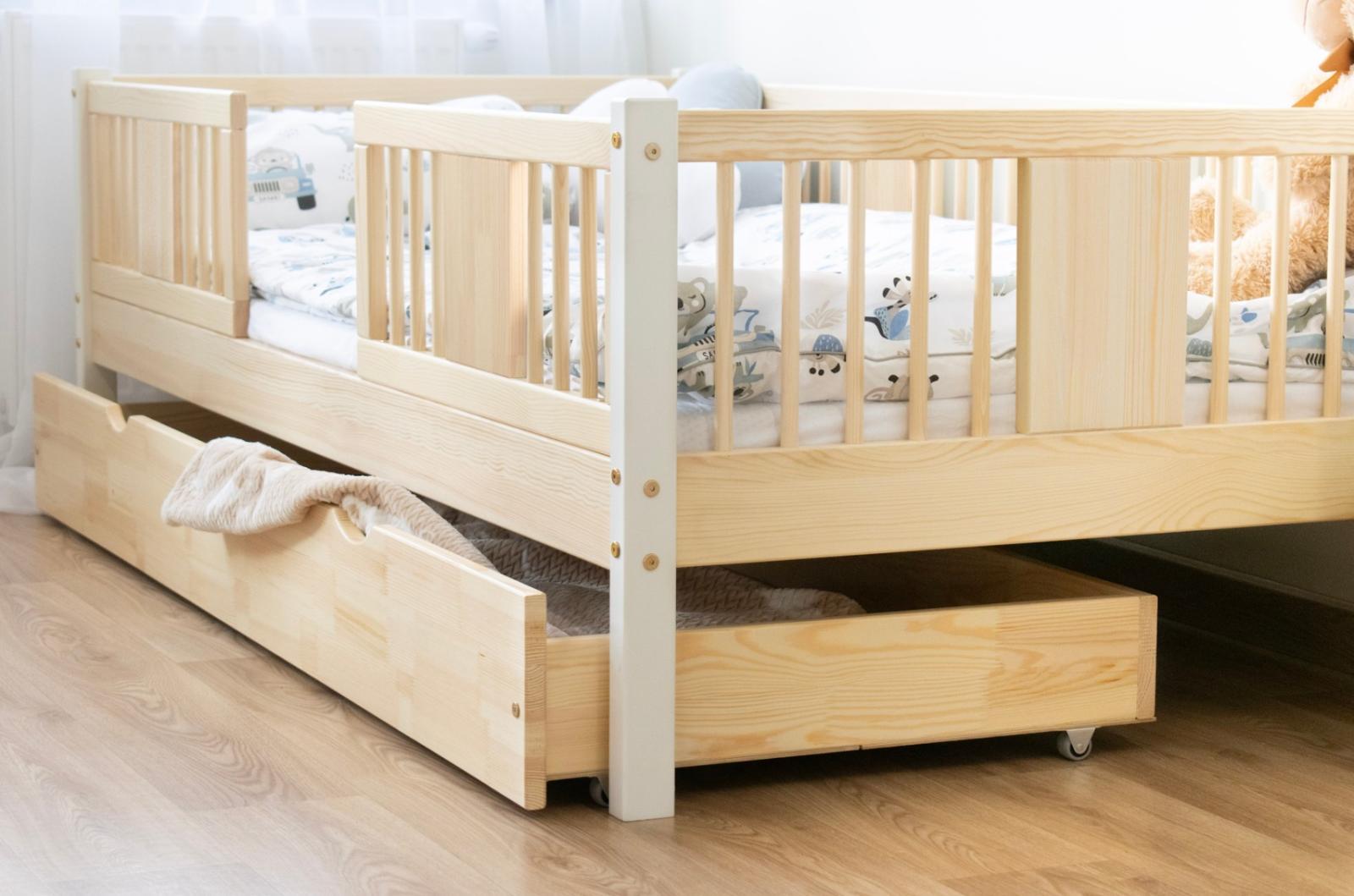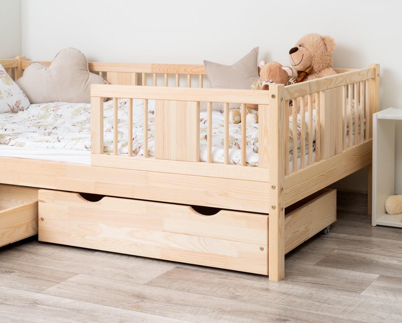 Táto detská posteľ je vytvorená tak, aby ušetrila priestor v detskej izbe. K posteli je možné tiež dokúpiť praktický a priestranný šuplík z masívu v niekoľkých variantoch: