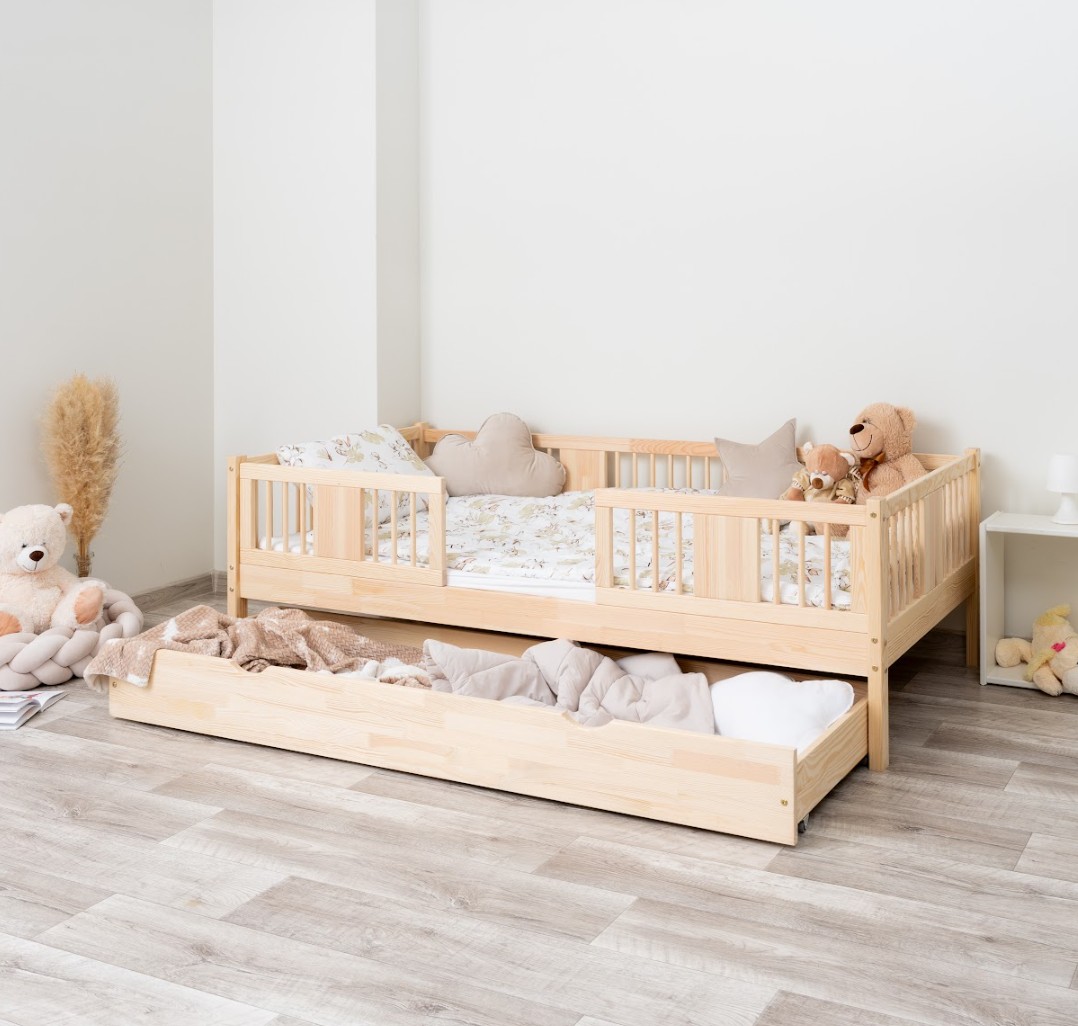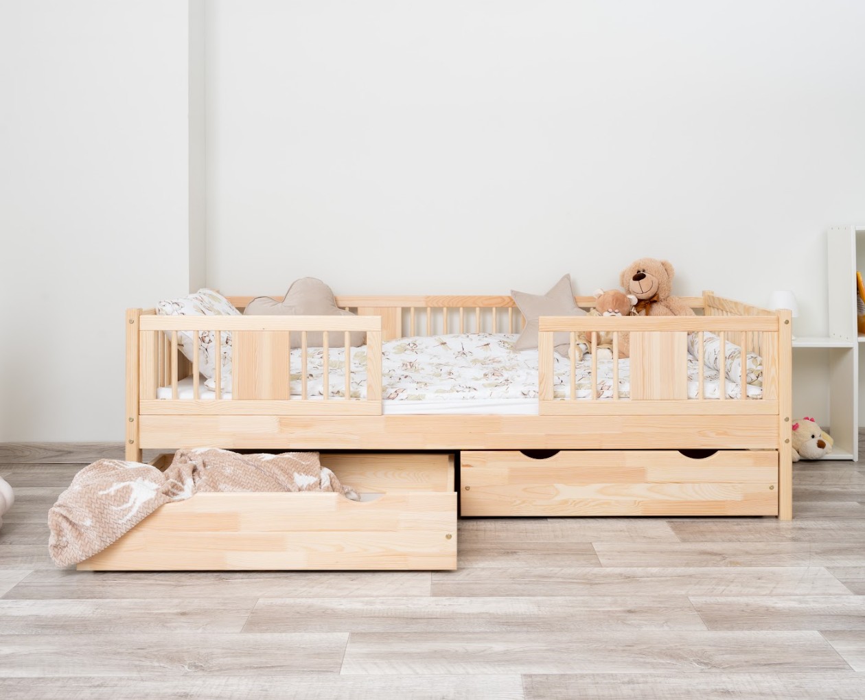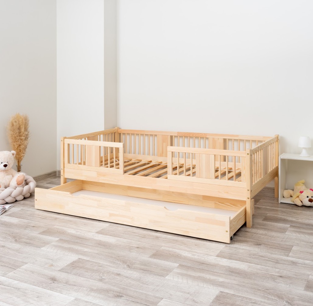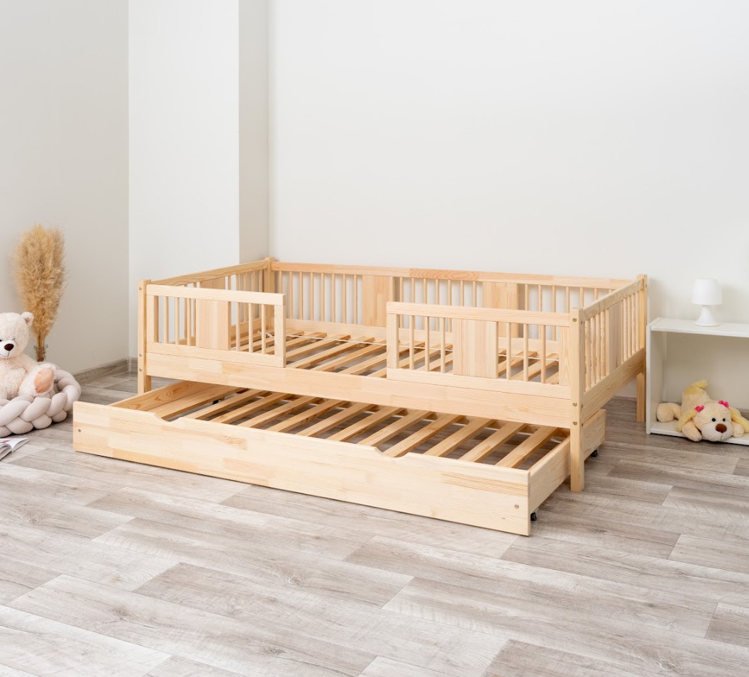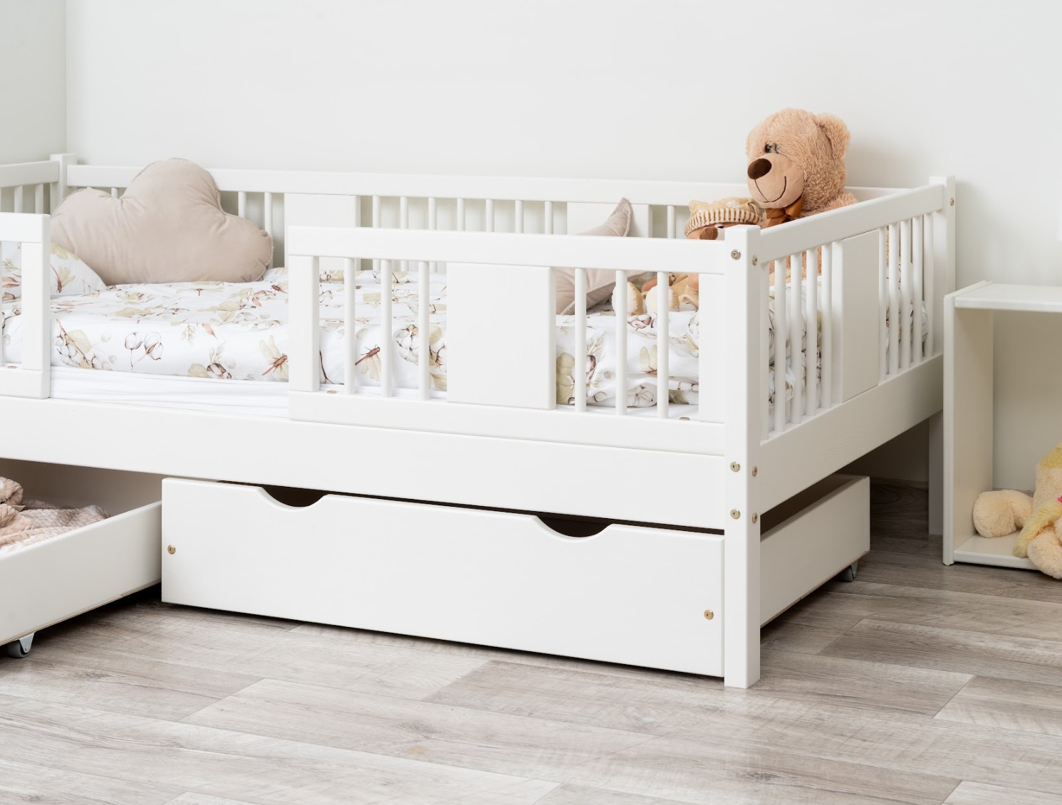 Táto detská posteľ je vytvorená tak, aby ušetrila priestor v detskej izbe. K posteli je možné tiež dokúpiť praktický a priestranný šuplík z masívu v niekoľkých variantoch: