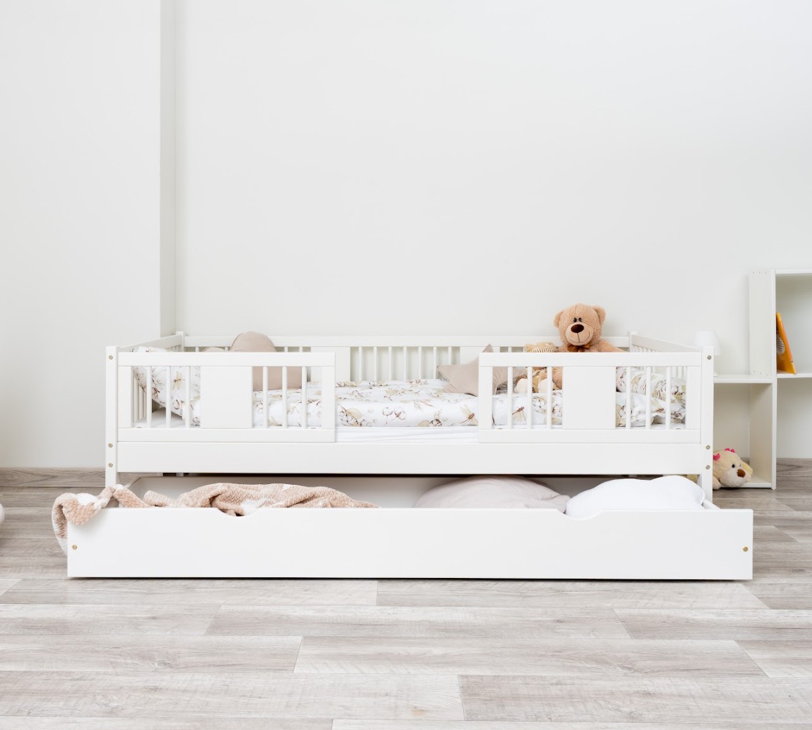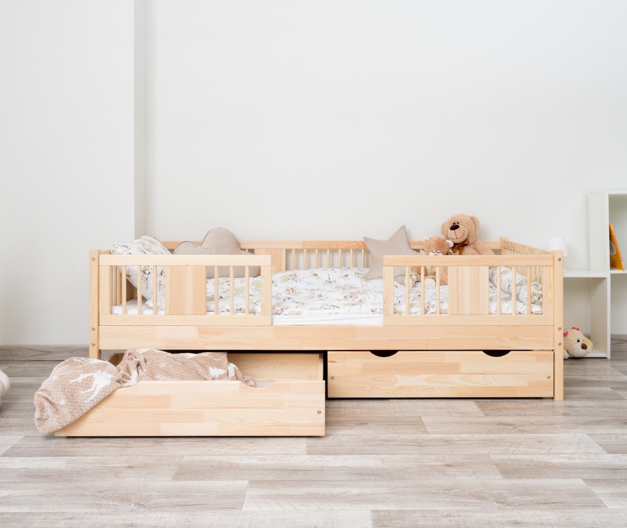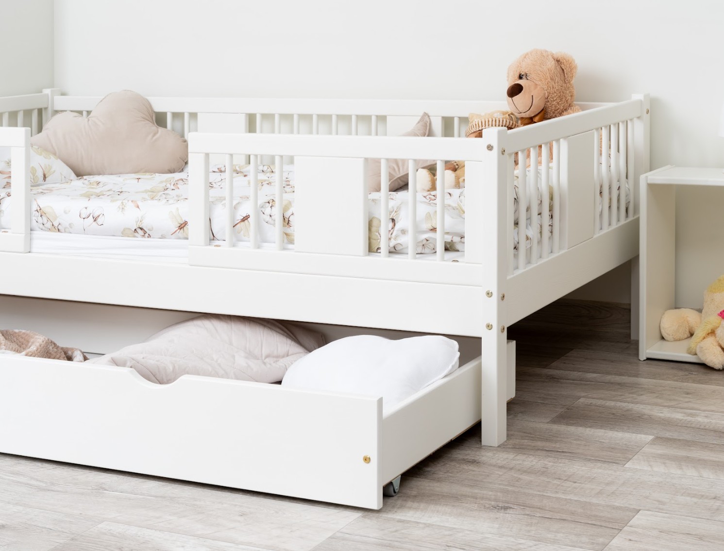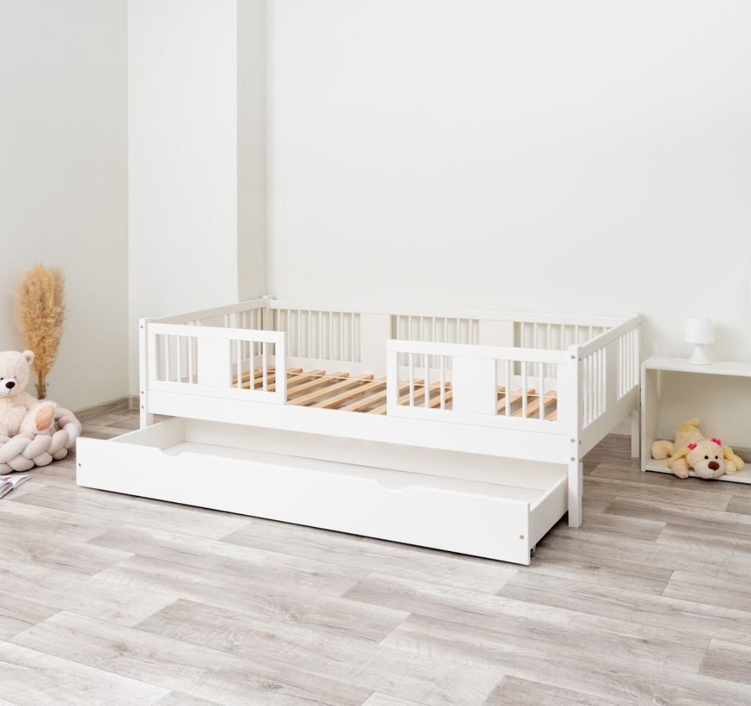 Táto detská posteľ je vytvorená tak, aby ušetrila priestor v detskej izbe. K posteli je možné tiež dokúpiť praktický a priestranný šuplík z masívu v niekoľkých variantoch: