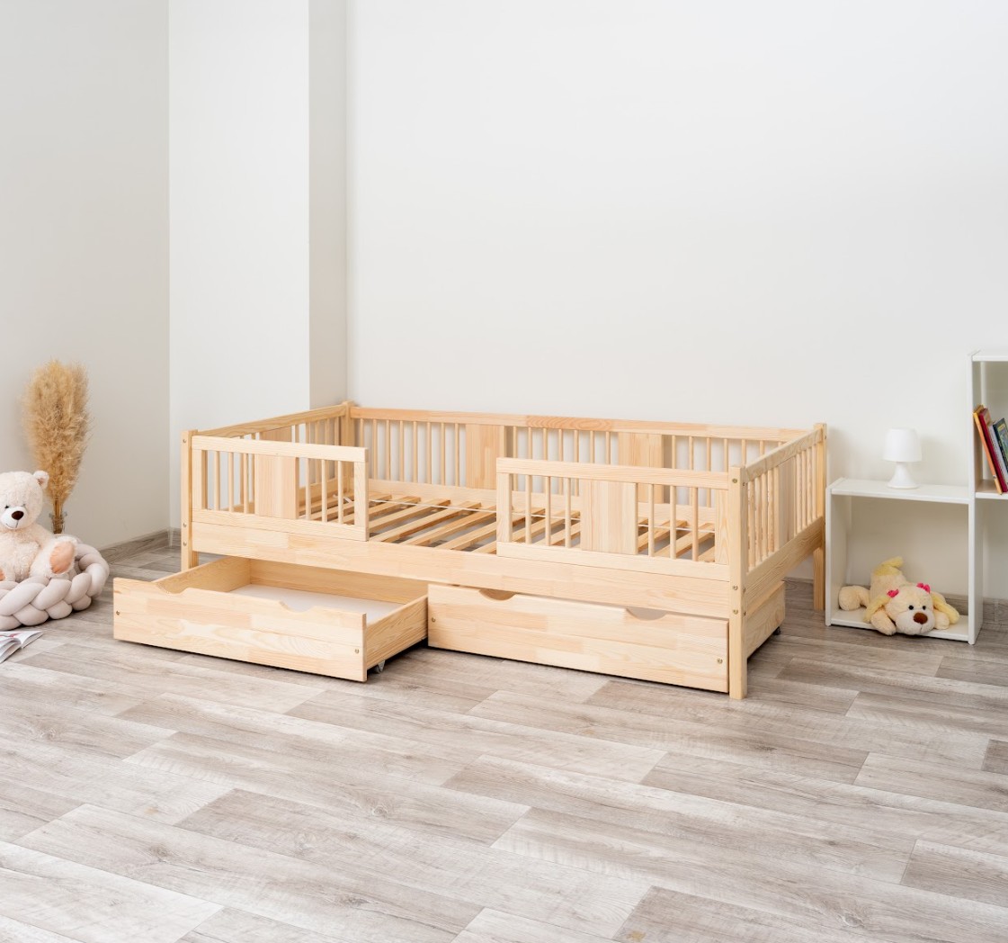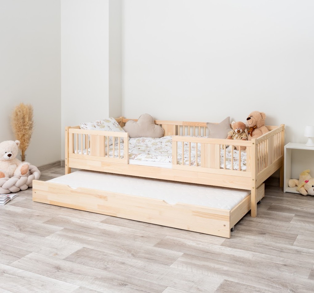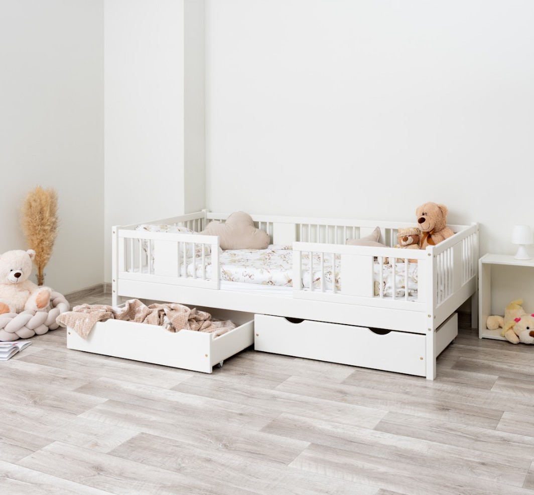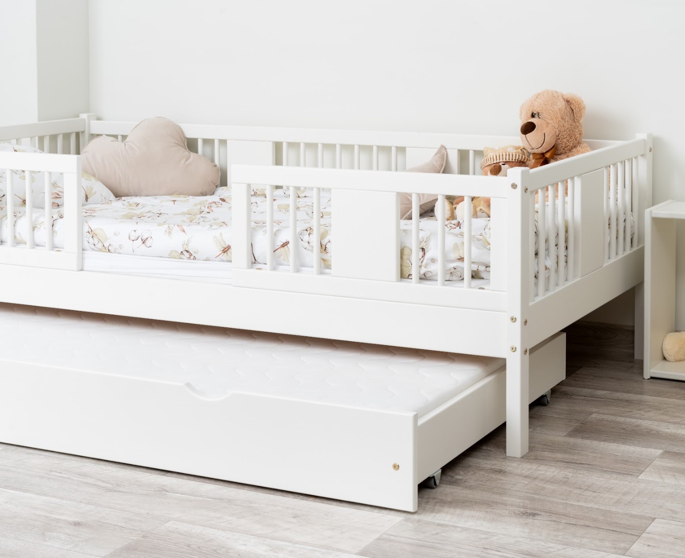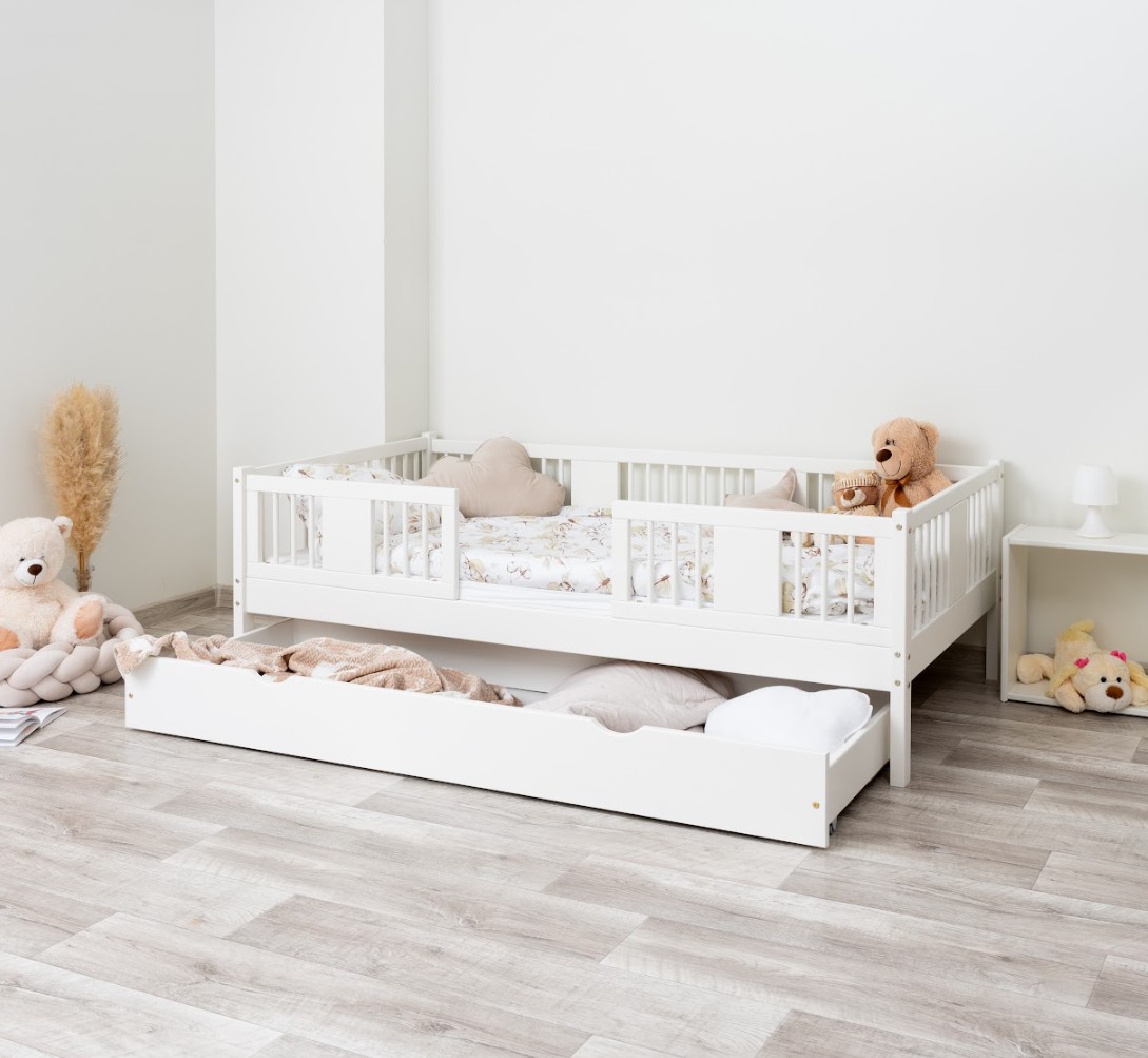 Táto detská posteľ je vytvorená tak, aby ušetrila priestor v detskej izbe. K posteli je možné tiež dokúpiť praktický a priestranný šuplík z masívu v niekoľkých variantoch: