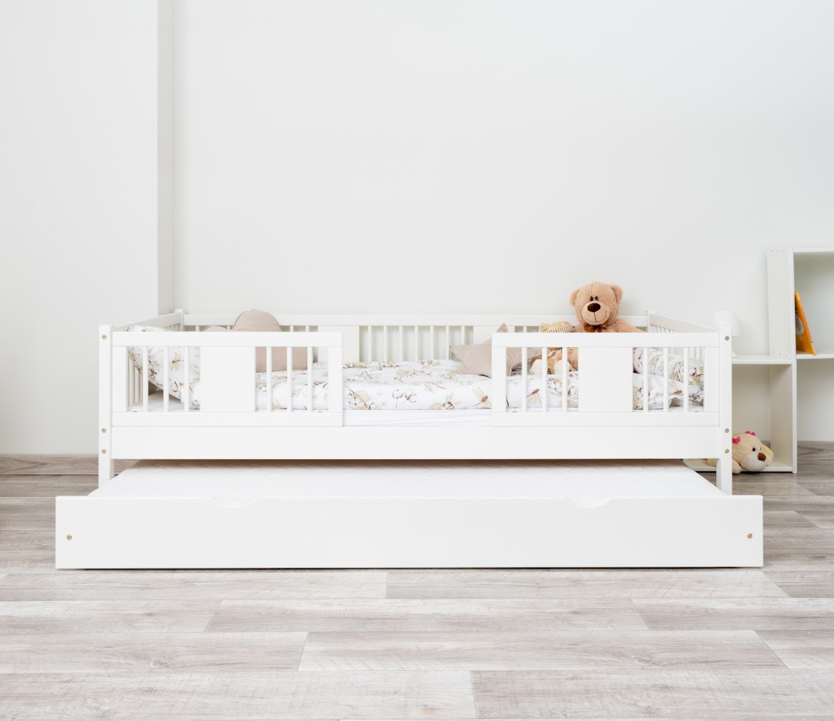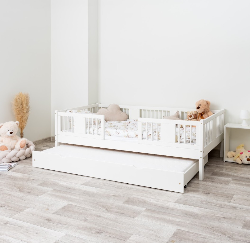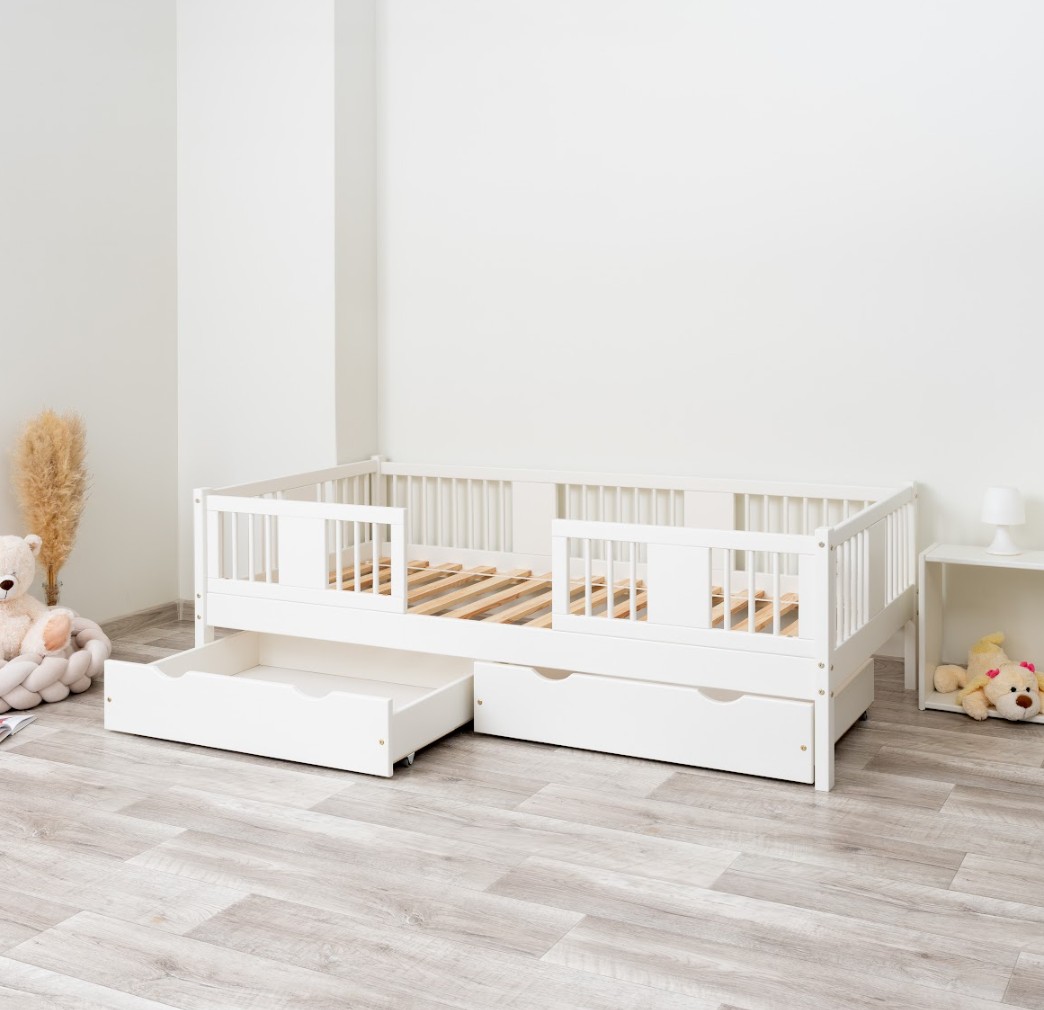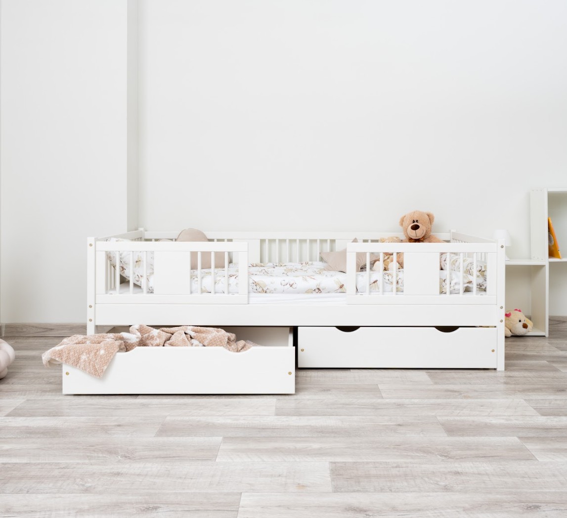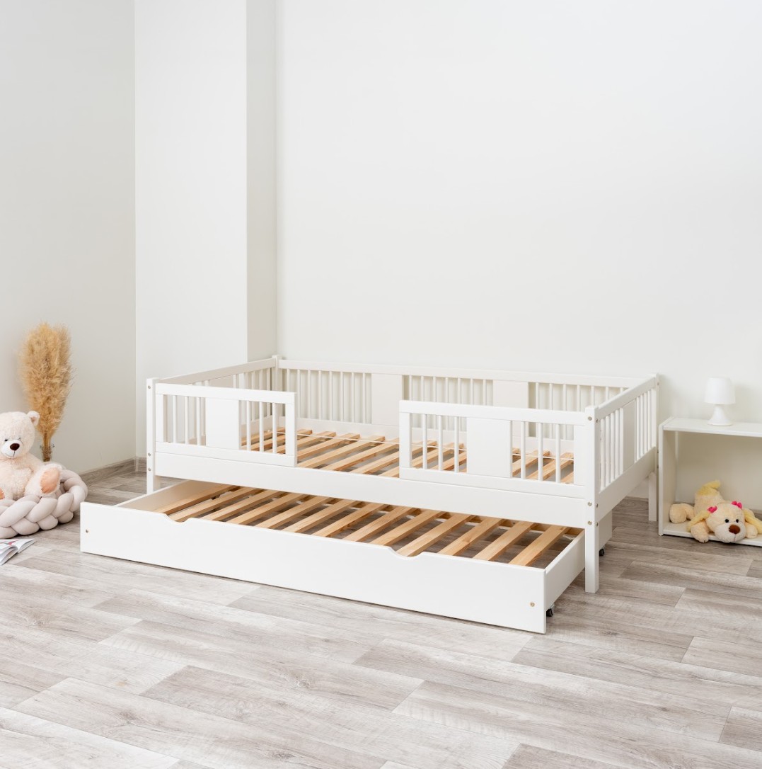 Táto detská posteľ je vytvorená tak, aby ušetrila priestor v detskej izbe. K posteli je možné tiež dokúpiť praktický a priestranný šuplík z masívu v niekoľkých variantoch: