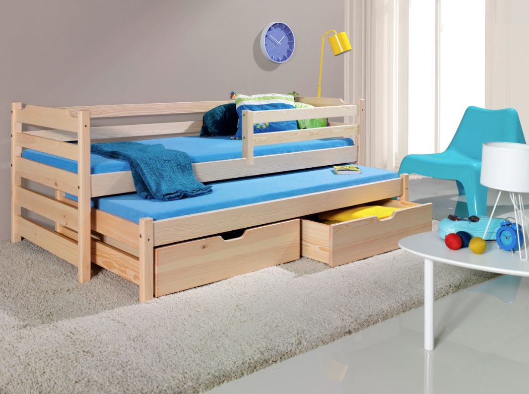Detská posteľ z masívu borovice MARTIN II s prístelkou a šuplíky - 200x90 cm - prírodná borovica