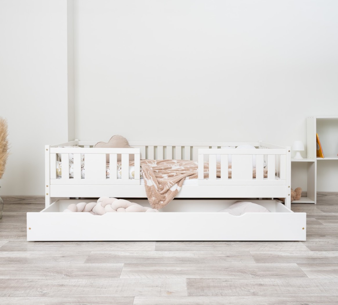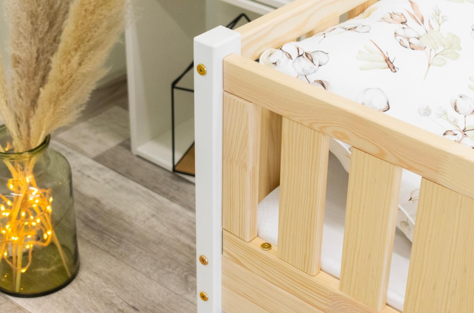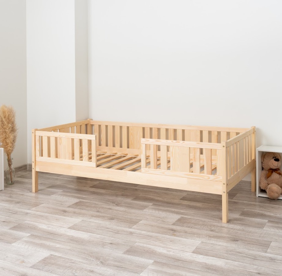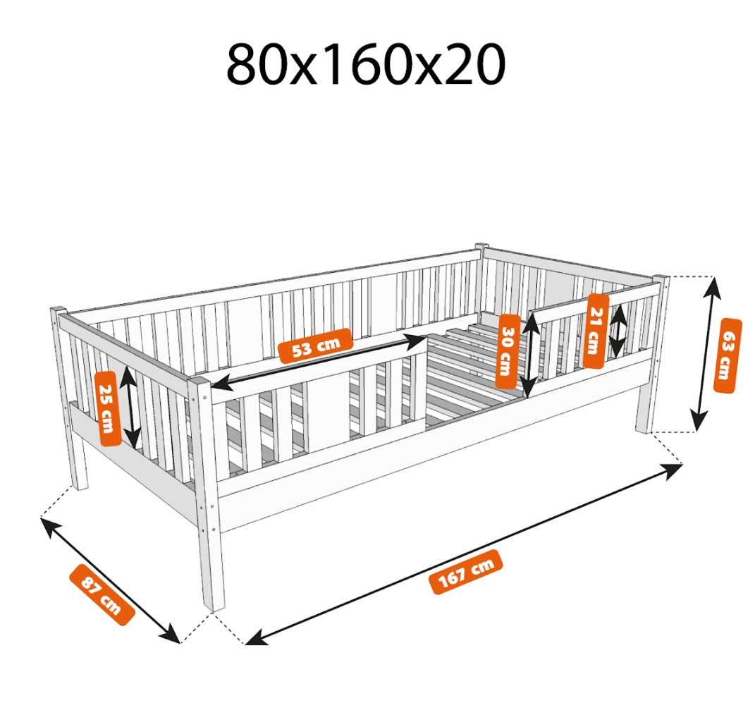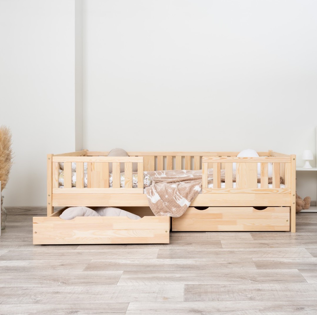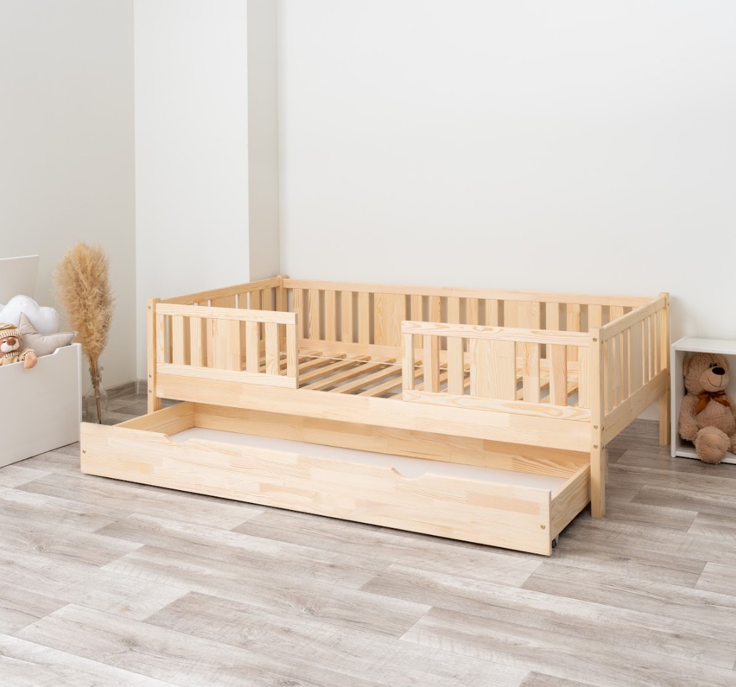 NIKO 20 cm je robustná a esteticky príjemná detská posteľ, vyrobená výhradne z prírodného borovicového dreva. Rám, zvýšený o 20 cm, dodáva jej praktickosti nový rozmer – voliteľnú zásuvku pod posteľou je možné využiť na posteľnú bielizeň, hračky alebo dokonca ako prístelku pre druhé dieťa. Tento model kombinuje škandinávsky štýl, odolné drevo a múdre riešenia pre moderné rodinné interiéry. Každý prvok postele NIKO 20 cm je vyrobený z lepeného borovicového dreva, ktoré je cenené pre svoju odolnosť, stabilitu a prírodný vzhľad. Drevo je starostlivo brúsené a hrany sú jemne zaoblené, takže je úplne bezpečné pre najmladších užívateľov. Na povrchovú úpravu boli použité ekologické farby na vodnej báze, ktoré spĺňajú bezpečnostné normy. Posteľ ponúkame aj vo verzii bez povrchových úprav - nelakované drevo. Vďaka tomu sa dá ľahko prispôsobiť - jej vzhľad môžete upraviť morením, lakovaním alebo maľovaním podľa vlastného uváženia. Každý prvok rámu bol precízne vyleštený a hrany sú jemne zaoblené, aby bolo zaistené maximálne pohodlie a bezpečnosť. Bezpečnostné zábrany pri vstupe do postele sú odnímateľné.