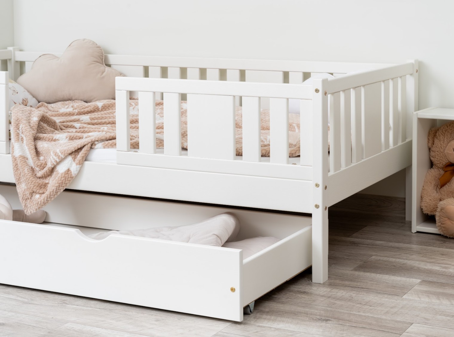 Jednolôžko NIKO 20 cm kombinuje klasický štýl, praktické riešenia a ekologické materiály. Vďaka zvýšenej konštrukcii a možnosti rozšírenia pomocou zásuviek môžete získať viac priestoru v detskej izbe bez toho, aby ste museli obetovať estetiku alebo bezpečnosť. Tento kus nábytku vám bude slúžiť mnoho rokov – najprv ako posteľ pre vaše batoľa a neskôr ako pohodlné miesto na oddych pre vaše staršie dieťa.
