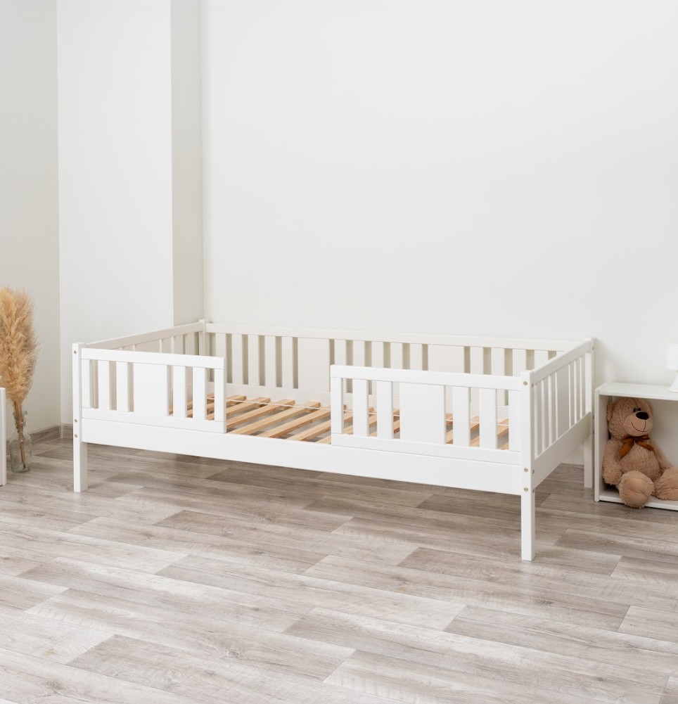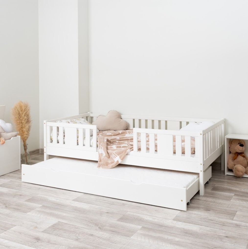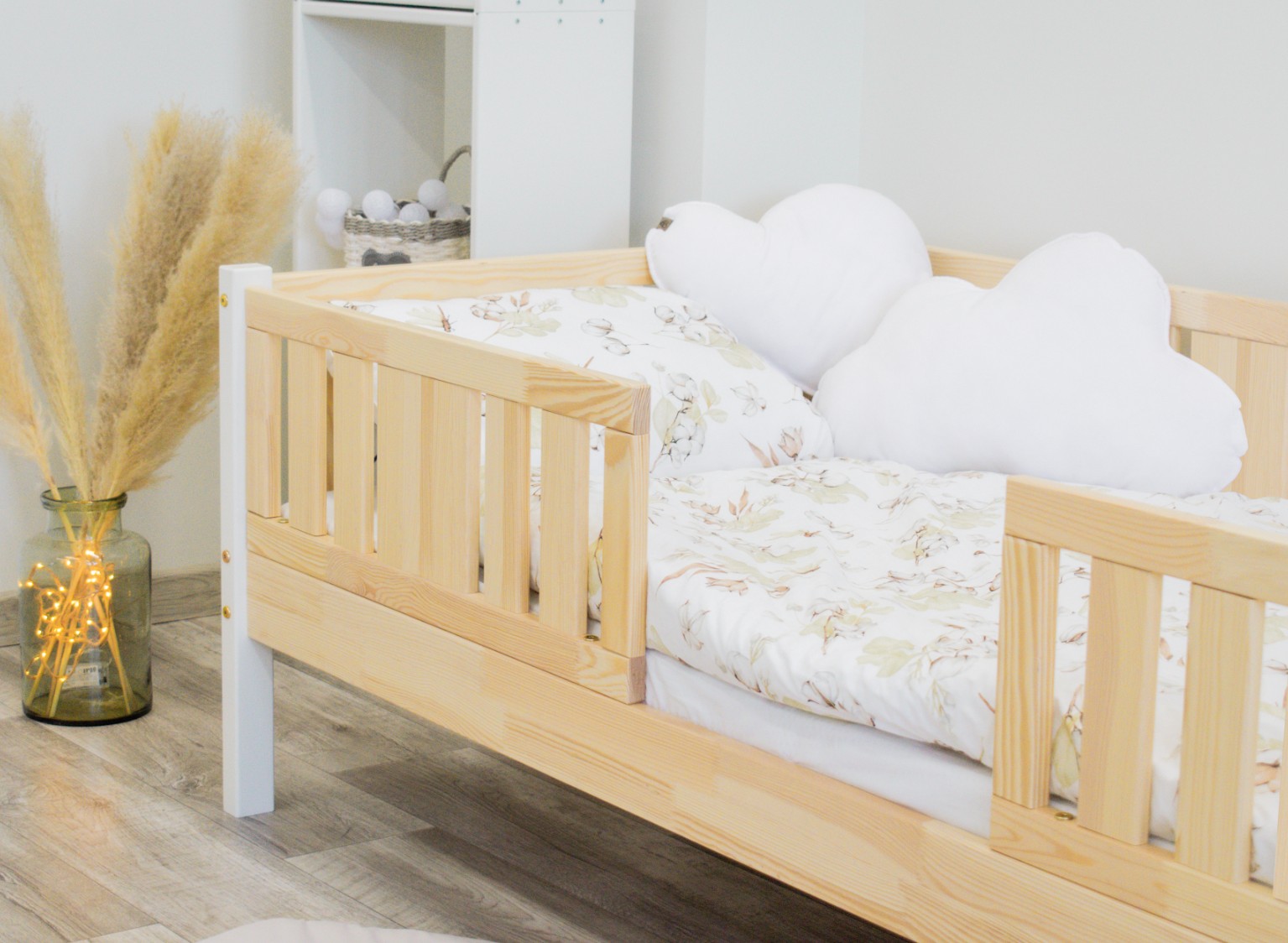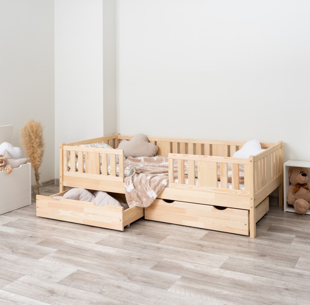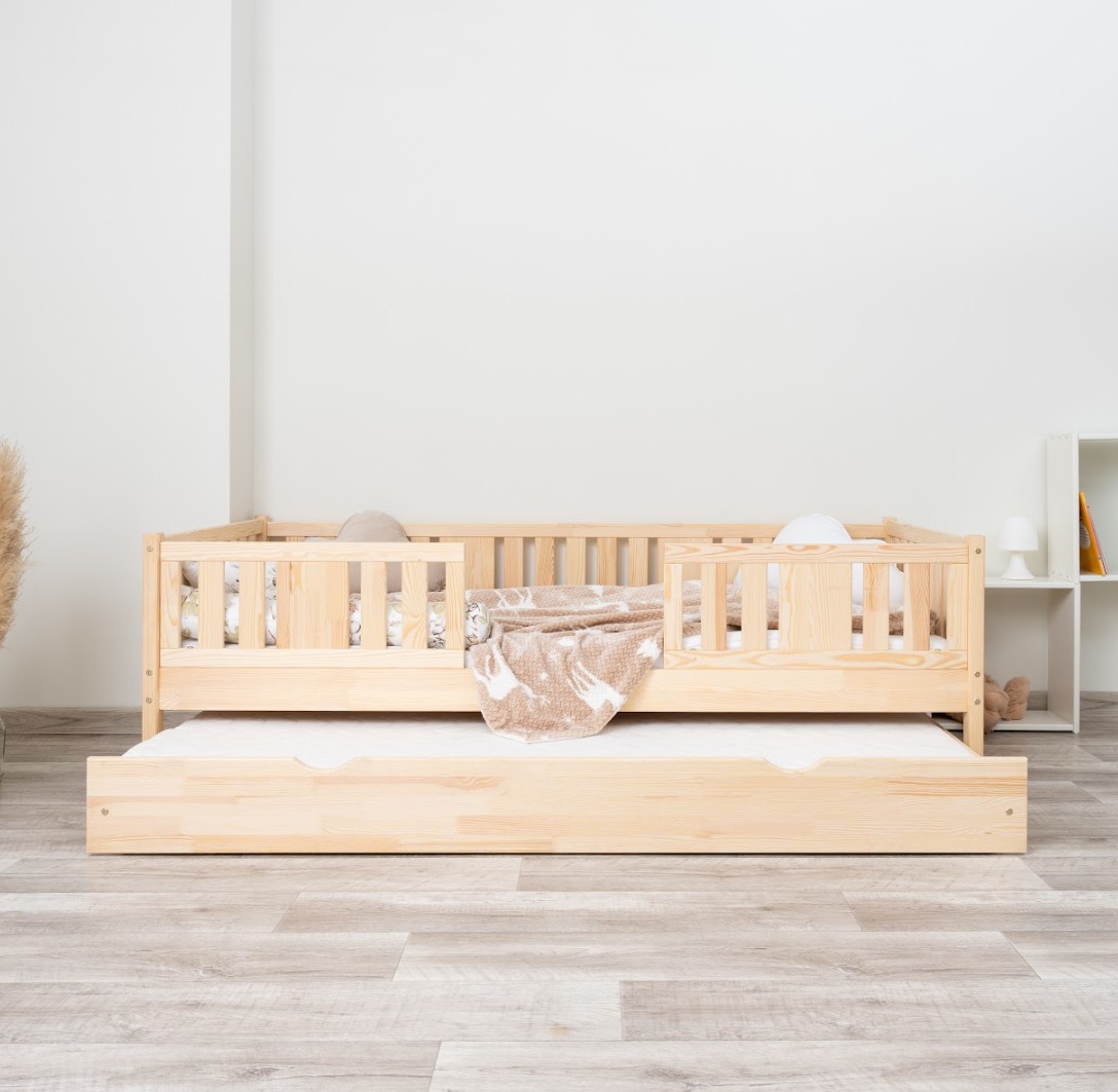 NIKO 20 cm je robustná a esteticky príjemná detská posteľ, vyrobená výhradne z prírodného borovicového dreva. Rám, zvýšený o 20 cm, dodáva jej praktickosti nový rozmer – voliteľnú zásuvku pod posteľou je možné využiť na posteľnú bielizeň, hračky alebo dokonca ako prístelku pre druhé dieťa. Tento model kombinuje škandinávsky štýl, odolné drevo a múdre riešenia pre moderné rodinné interiéry. Každý prvok postele NIKO 20 cm je vyrobený z lepeného borovicového dreva, ktoré je cenené pre svoju odolnosť, stabilitu a prírodný vzhľad. Drevo je starostlivo brúsené a hrany sú jemne zaoblené, takže je úplne bezpečné pre najmladších užívateľov. Na povrchovú úpravu boli použité ekologické farby na vodnej báze, ktoré spĺňajú bezpečnostné normy. Posteľ ponúkame aj vo verzii bez povrchových úprav - nelakované drevo. Vďaka tomu sa dá ľahko prispôsobiť - jej vzhľad môžete upraviť morením, lakovaním alebo maľovaním podľa vlastného uváženia. Každý prvok rámu bol precízne vyleštený a hrany sú jemne zaoblené, aby bolo zaistené maximálne pohodlie a bezpečnosť. Bezpečnostné zábrany pri vstupe do postele sú odnímateľné.