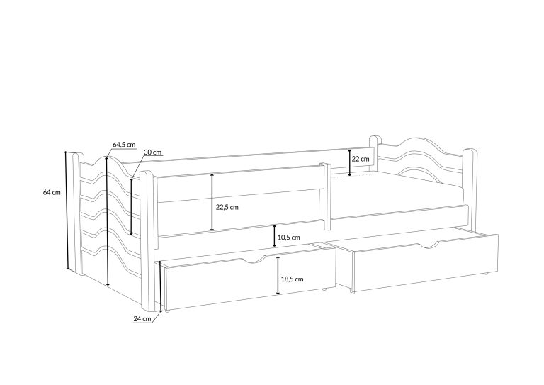 Pinocchio je jednolôžková detská posteľ vyrobená s maximálnou starostlivosťou. Vyznačuje sa veľmi odolnou štruktúrou borovicového dreva , vysokými podhlavníkmi bez ostrých hrán, priestornosťou a estetickým, minimalistickým štýlom. U bočníc a čiel je šírka použitého materiálu 2,6 cm. Posteľ je ošetrená vodou riediteľným lakom, ktorý je ekologický a zdravotne nezávadný. Pinocchio je univerzálna posteľ navrhnutá tak, aby deťom poskytla čo najväčšie pohodlie počas spánku. Jej jednoduchý dizajn spája dôraz na estetiku, bezpečnosť a vysokú kvalitu spracovania. Vďaka tomu bude nábytok vyzerať dobre v detskej izbe a zaručí svojmu malému užívateľovi pokojný spánok. Bezpečnosť detí zaisťuje odnímateľná bariérka s možnosťou univerzálnej montáže na pravú aj ľavú stranu. Súčasťou postele sú tiež dva priestranné šuplíky na uloženie lôžkovín a pevný latkový rošt .