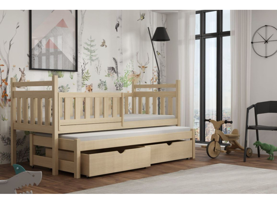 Detská posteľ z masívu borovice PROKOP s prístelkou a šuplíkmi - 180x80 cm - PRÍRODNÁ BOROVICA