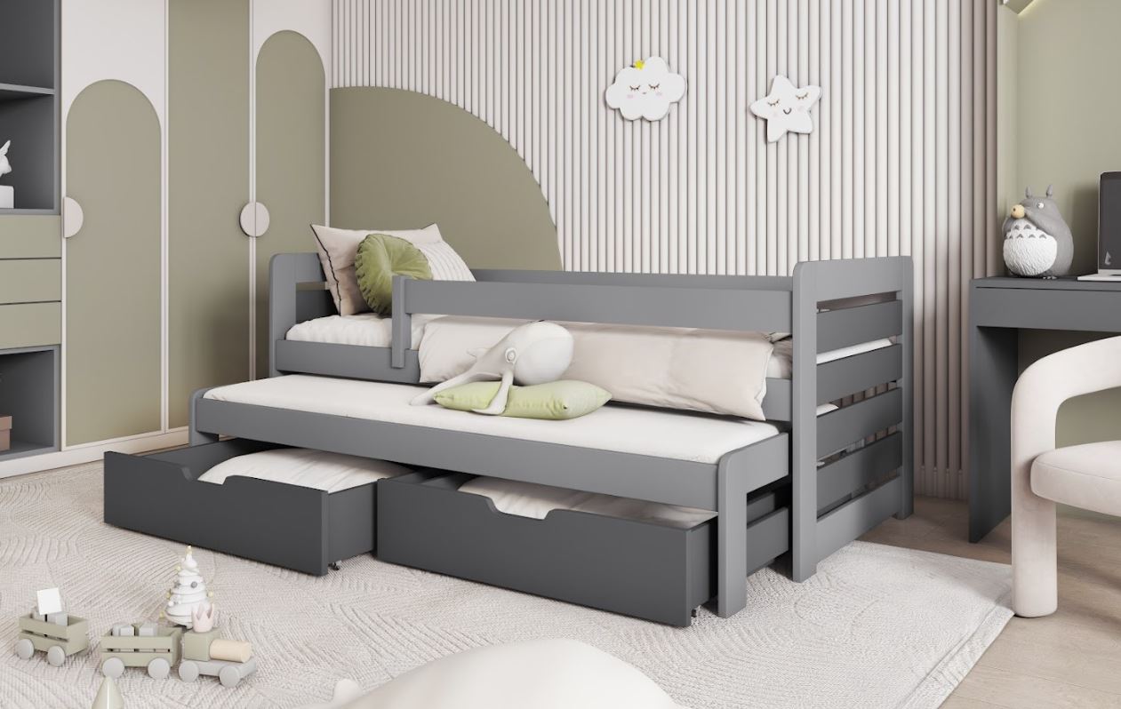 Detská posteľ z masívu borovice TOMÁŠ s prístelkou - bez šuplíkov - 200x90 cm - grafit/sivá