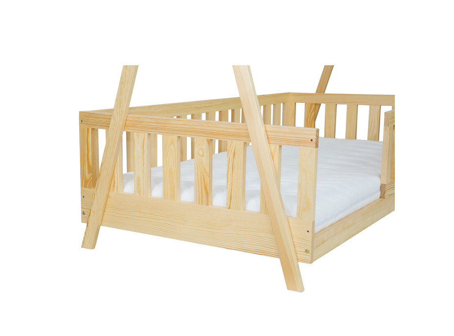 Típí domčeková detská postieľka v škandinávskom štýle je vyrobená z kvalitného borovicového dreva a predstavuje moderné poňatie postelí, ktoré nadchne každé dieťa. Svojím tvarom ponúka bezpečný priestor na spánok a relaxáciu dieťaťa , ale aj miesto na hranie, čítanie či učenie sa. Výber dreva, zodpovedné ručné opracovanie aj kvalitné spoje zaisťujú stabilitu a bezpečnosť postele . Samozrejmosťou je aj brúsenie a zaoblenie kontaktných častí postele tak, aby bola pre dieťa maximálne bezpečná.