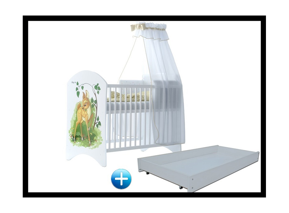 Detskú postieľku z kvalitného materiálu s nadčasovým dizajnom si zamiluje každé dieťa. Detská postieľka je vyrobená z kvalitných MDF dosiek s hrúbkou 18 mm. Motív na postieľke je vyhotovený z ekologických a nezávadných farieb, ktoré neohrozujú zdravie dieťaťa. Potlač má krásne sýte farby, ktoré sú zabezpečené špeciálnym laminátom s ochranou proti oderu a vyblednutiu farieb. Postieľka je ľahko umývateľná. Vďaka univerzálnemu dizajnu je kolekcia BAMBI vhodná ako pre chlapcov tak pre dievčatá. Súčasťou detskej postieľky sú tri vyberateľné priečky, ktoré zaisťujú väčšiu praktickosť.
