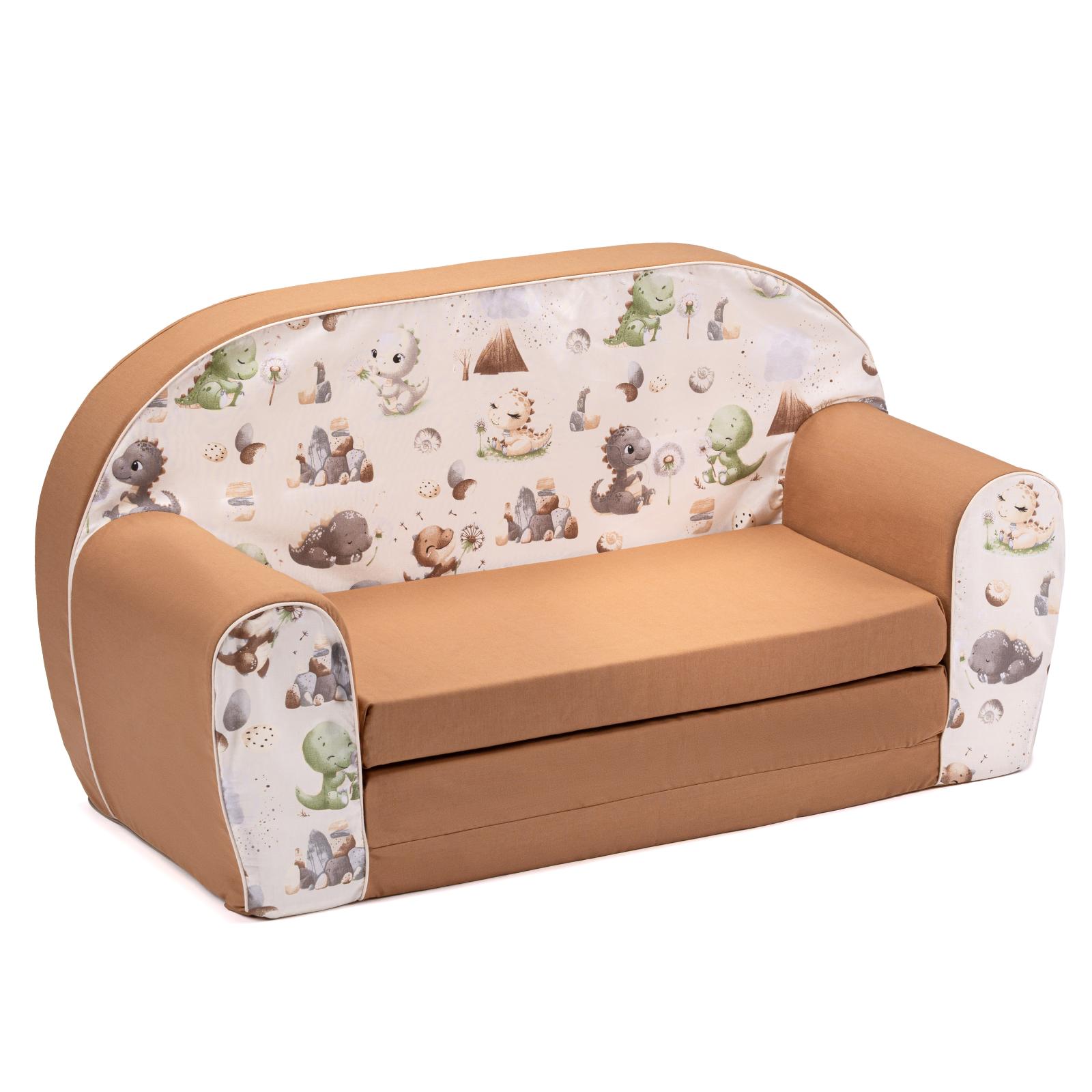 Detská rozkladacia MINI pohovka Dinosaury - krémová/hnedá