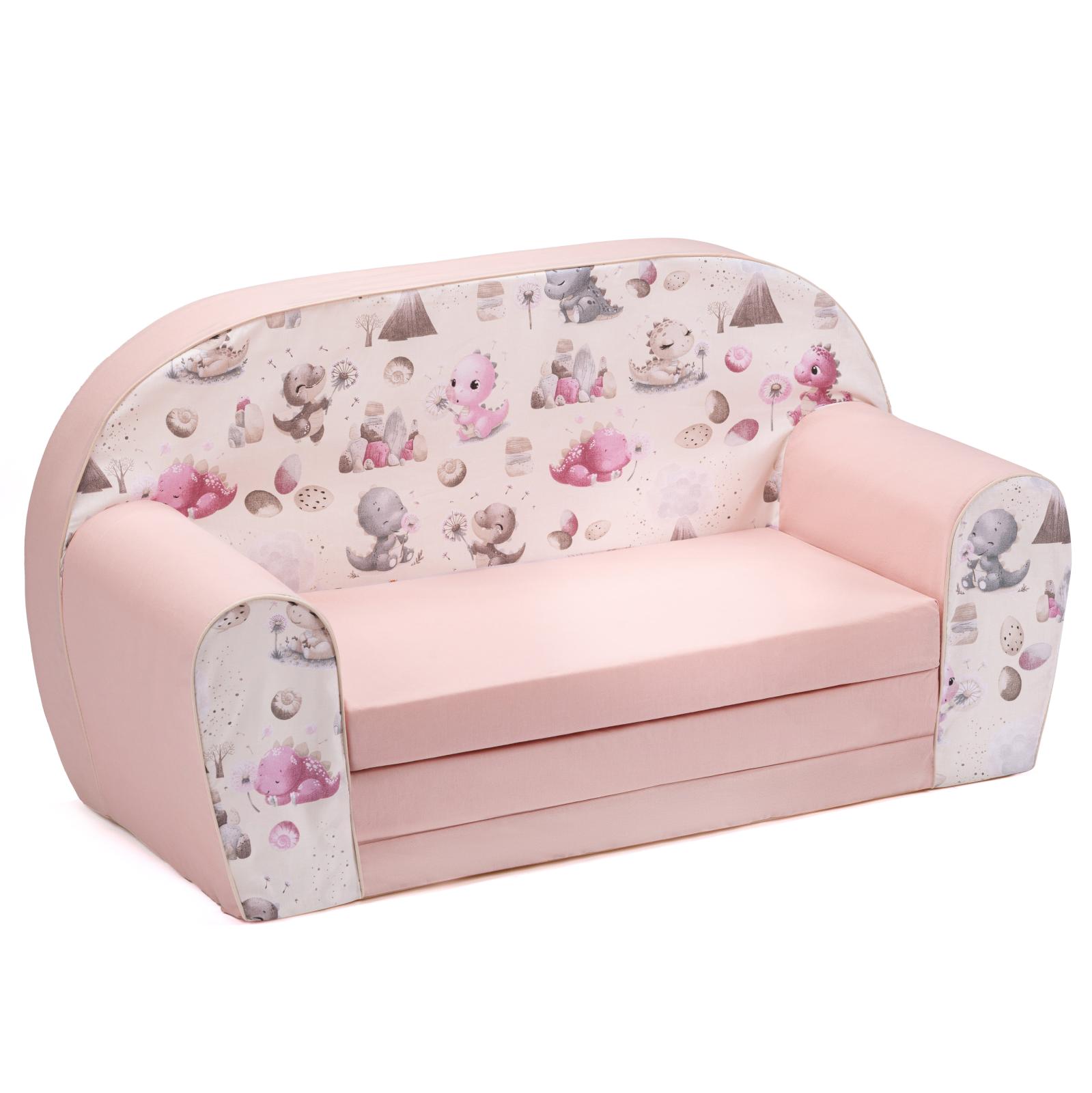 Detská rozkladacia MINI pohovka Dinosaury - krémová/ružová