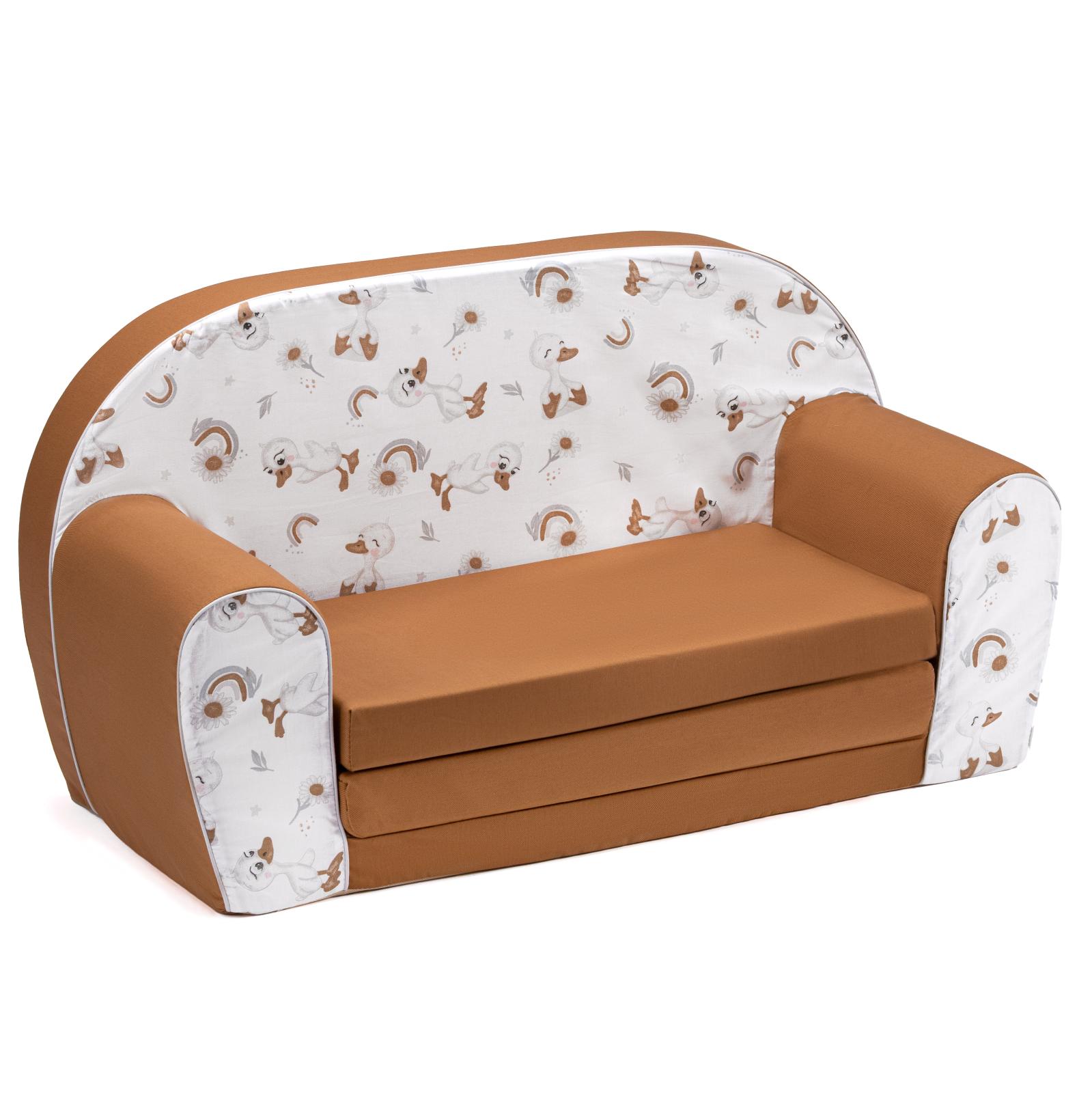 Detská rozkladacia MINI pohovka Kačenky - biela / hnedá