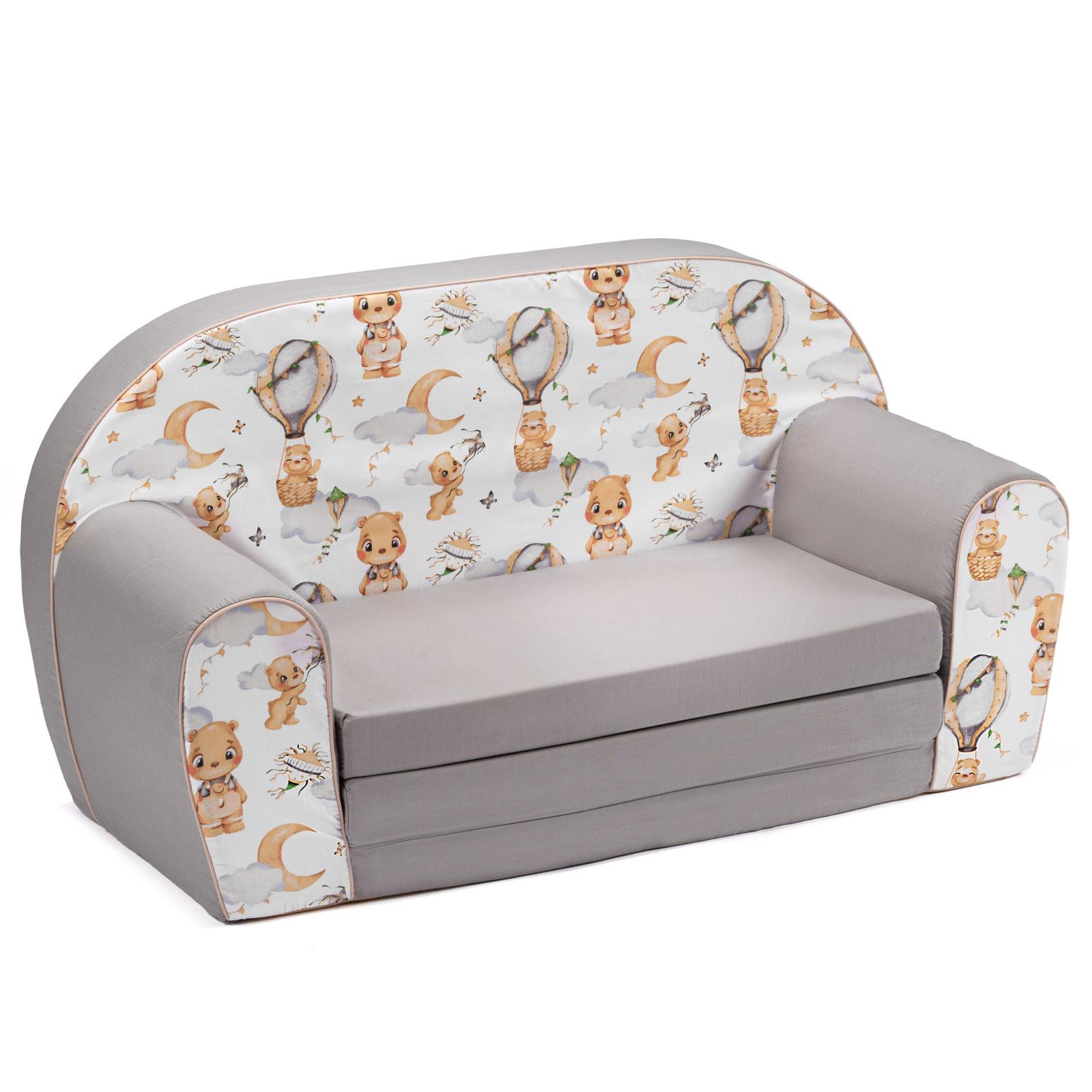 Detská rozkladacia MINI pohovka Let balónom - biela/sivá