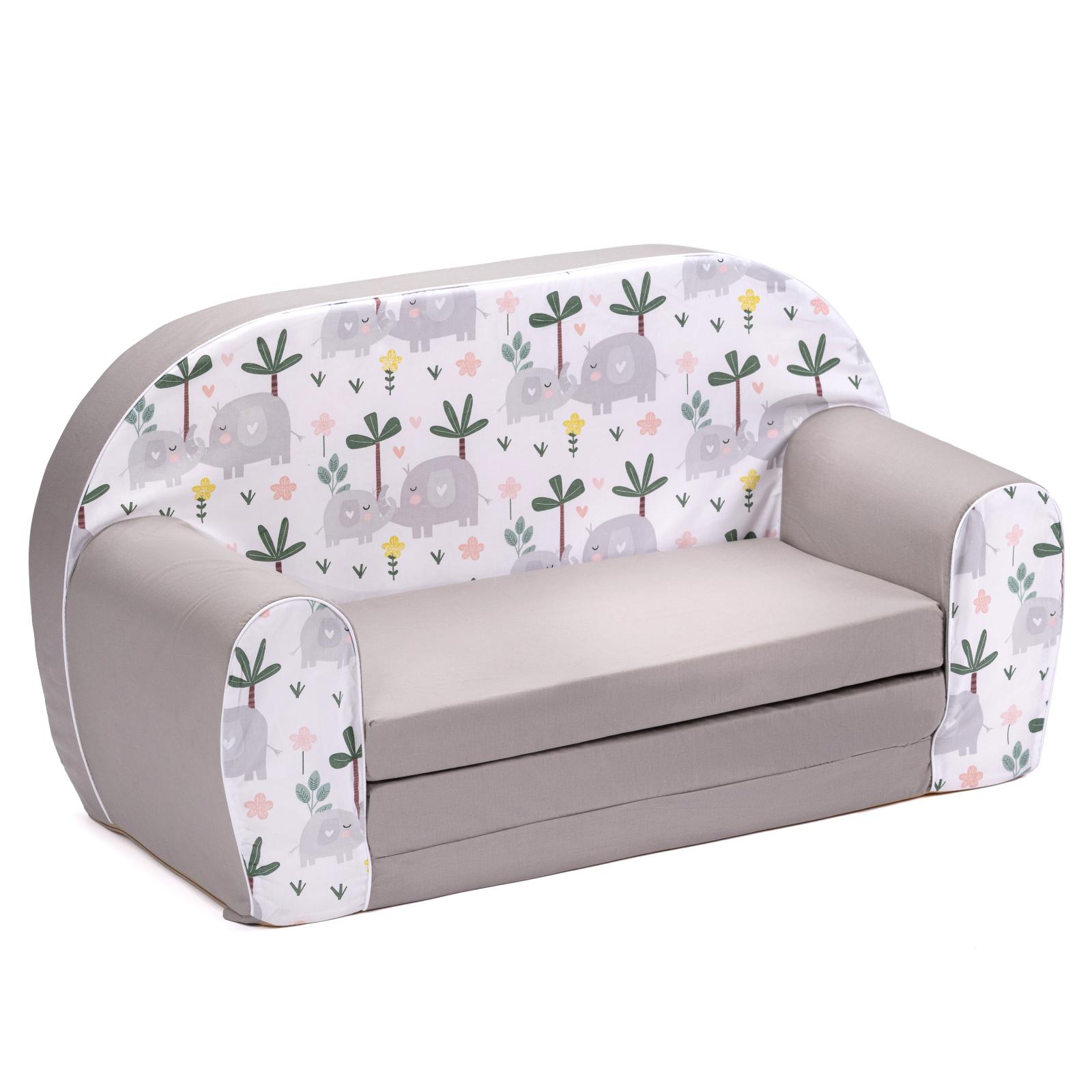 Detská rozkladacia MINI pohovka Slony - biela/sivá