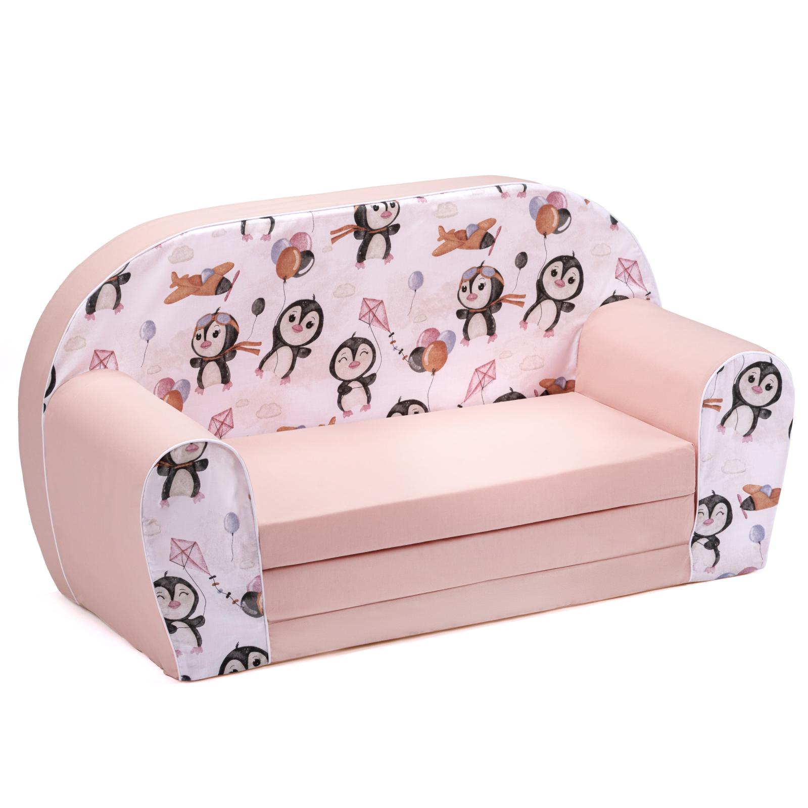 Detská rozkladacia MINI pohovka Tučniaky - biela/ružová