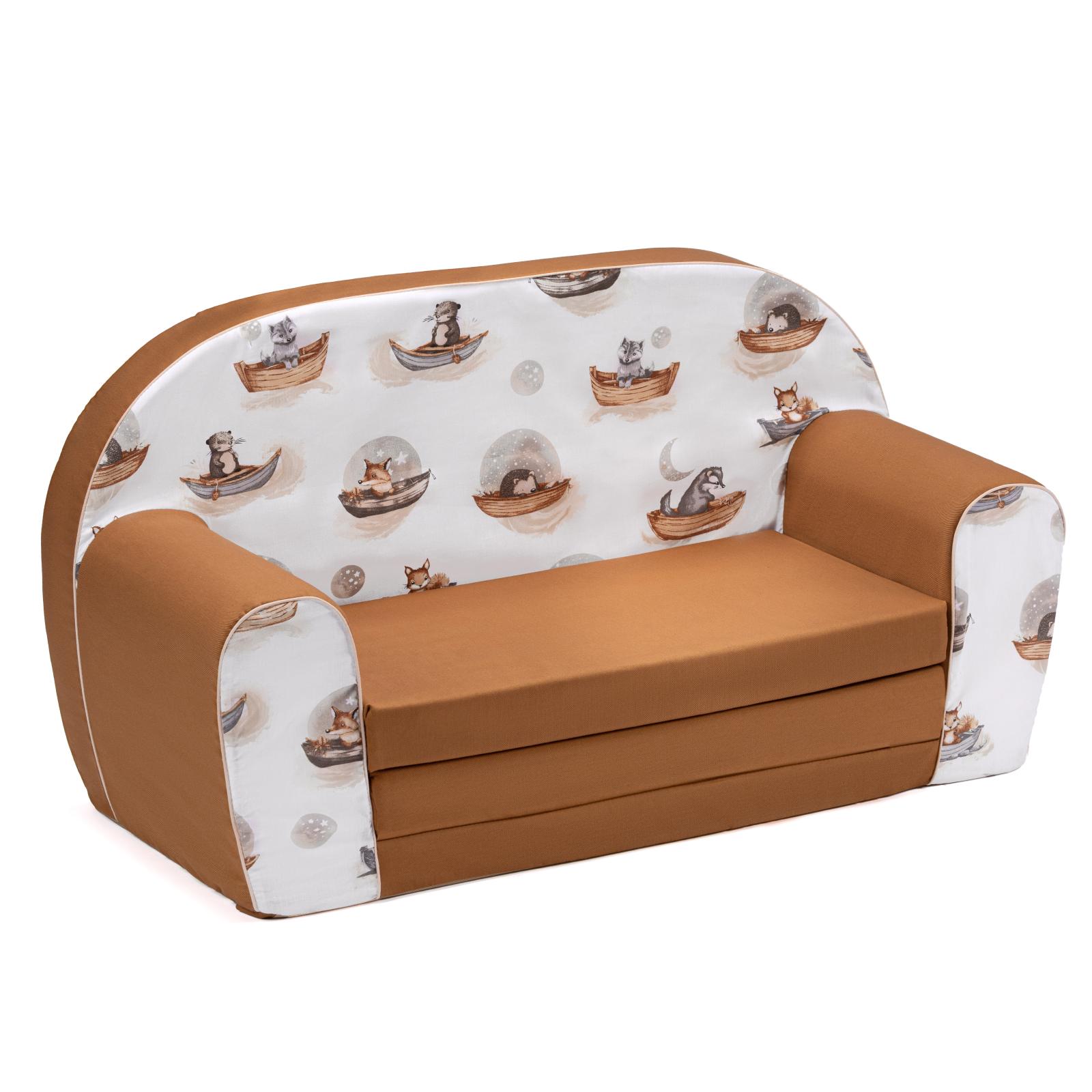 Detská rozkladacia MINI pohovka Zvieratká na lodičkách - biela/hnedá