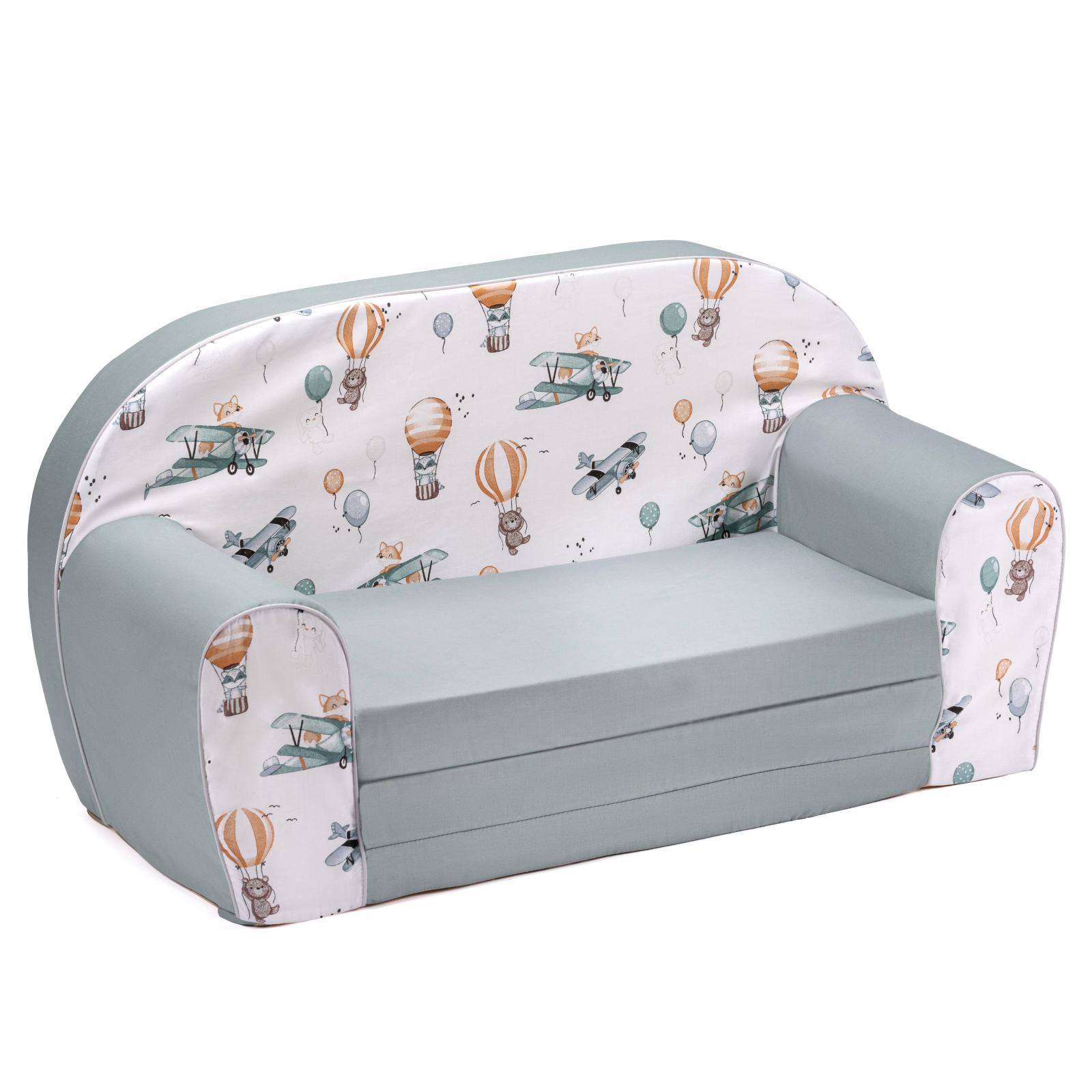 Detská rozkladacia MINI pohovka Lietajúce prostriedky - biela/mätová