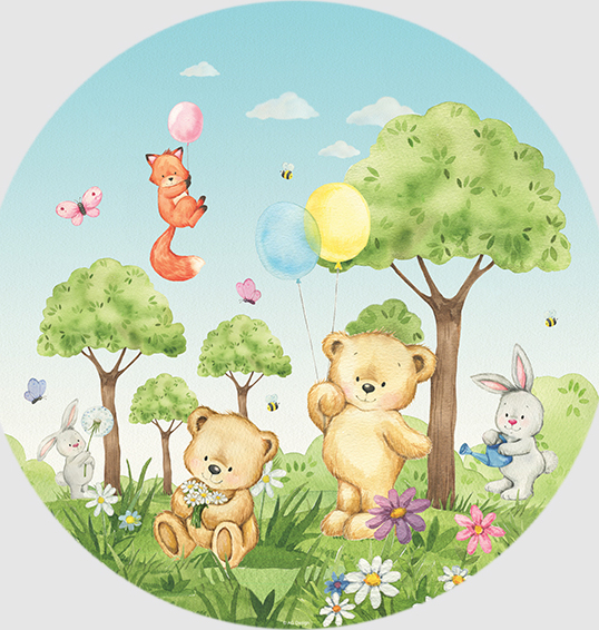 Detská samolepiaca fototapeta - Medvedík 1 - guľatá - 70 cm