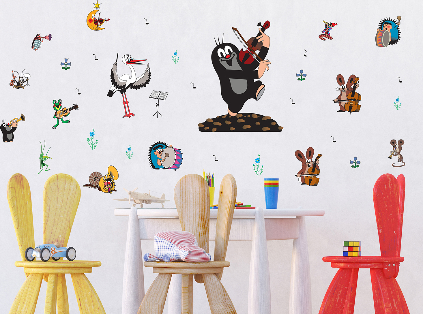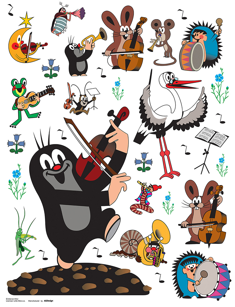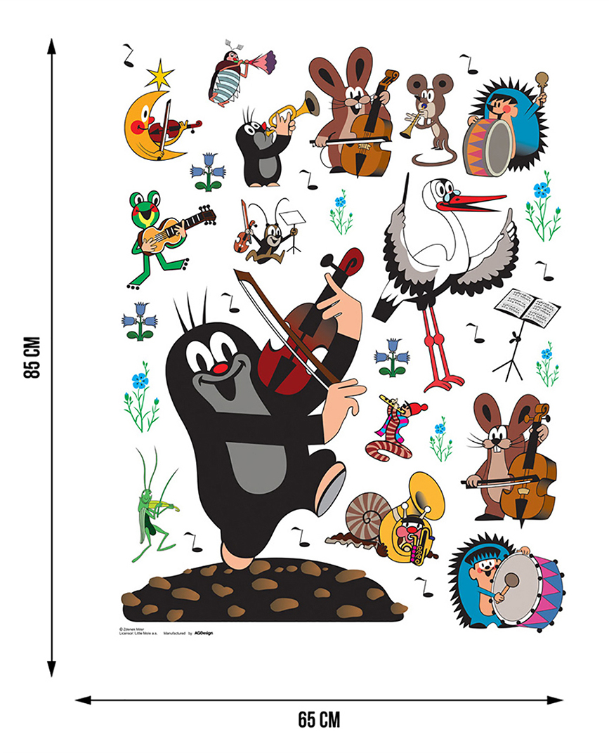 Detská samolepka na stenu - Krtko hrá na husle - 65x85 cm