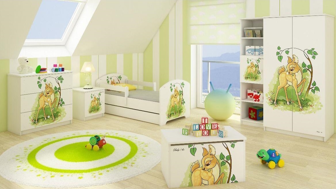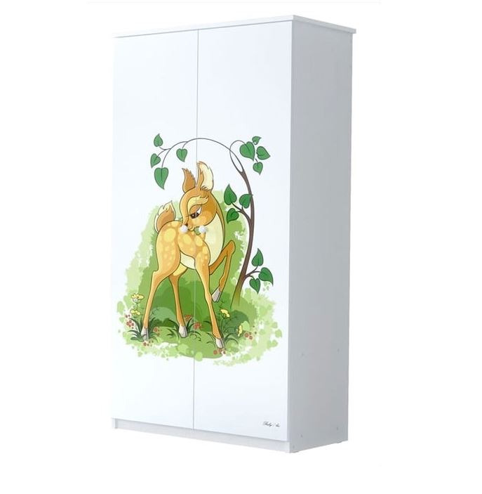 Túto šatníková skriňa z kvalitného materiálu s nadčasovým dizajnom si zamiluje každé dieťa. Detská šatníková skriňa je vyrobená z kvalitných MDF dosiek s hrúbkou 18 mm. Motív na šatníkovej skrini je vyhotovený z ekologických a nezávadných farieb, ktoré neohrozujú zdravie dieťaťa. Potlač má krásne sýte farby, ktoré sú zabezpečené špeciálnym laminátom s ochranou proti oderu a vyblednutiu. Skriňa je ľahko umývateľná. Vďaka univerzálnemu dizajnu je kolekcia BAMBI vhodná ako pre chlapcov tak pre dievčatá.