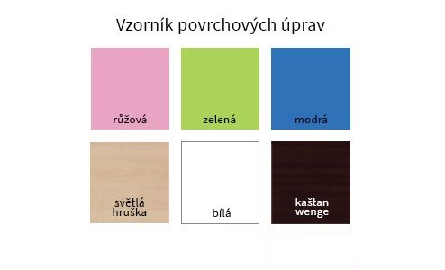 Nezabudnuteľnou súčasťou každej detskej izby je skriňa, kam si vaše dievčatko alebo chlapček môže uložiť oblečenie. Jednoduchý dizajn, kedy sa biela kombinuje s farebnými dvierkami, soklom a čelom hore vhodne doplní každý detskú izbu. Zvoliť si môžete zo šiestich farieb a tiež ľavú alebo pravú variantu. Typ 1A obsahuje šatníkovú tyč a dole dva šuplíky. Skriňa je vyrobená z 18mm laminovanej dosky. Okraje sú ukončené okrajom z PVC / ABS, ktorý ich chráni pred mechanickým poškodením a vlhkosťou. Namiesto rúčok slúži na otváranie šuplíkov a skriniek oblúkové výrezy.