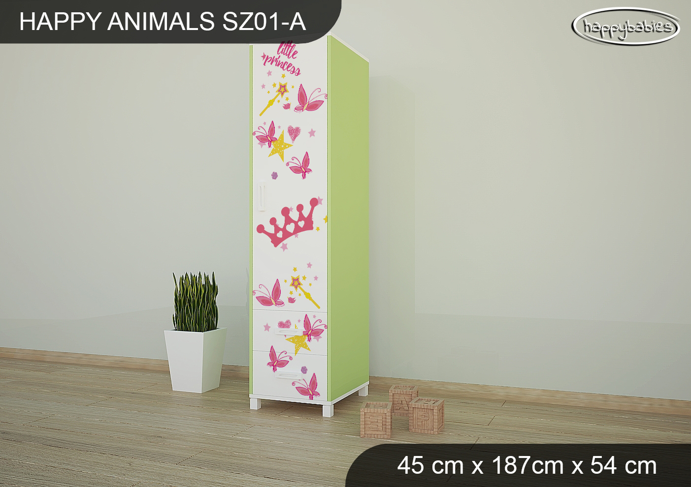 Detské skrine ponúkame v neprebernom množstve vzorov, veľkostí i farebných prevedení. Detské šatníkové skrine môžete mať s policami alebo šatníková tyčí, môžete si zvoliť počet zásuviek, poličiek v skrini, šírku skrine aj farebné prevedenie či imitácii dreva - stačí si len zvoliť ten správny typ, ktorý vám vyhovuje. K tlačenie obrázku na skriniach sú používané len ekologické farby, ktoré spĺňajú prísne zdravotne-bezpečnostné normy. Potlač nábytku je charakteristický živými farbami a je zaistený špeciálnym laminátom proti vyblednutiu. Vaše deti určite ocenia možnosť vybrať si skriňu v originálnom dizajne presne podľa svojich predstáv. Skrine sú vyrobené z vysoko kvalitného lamina.