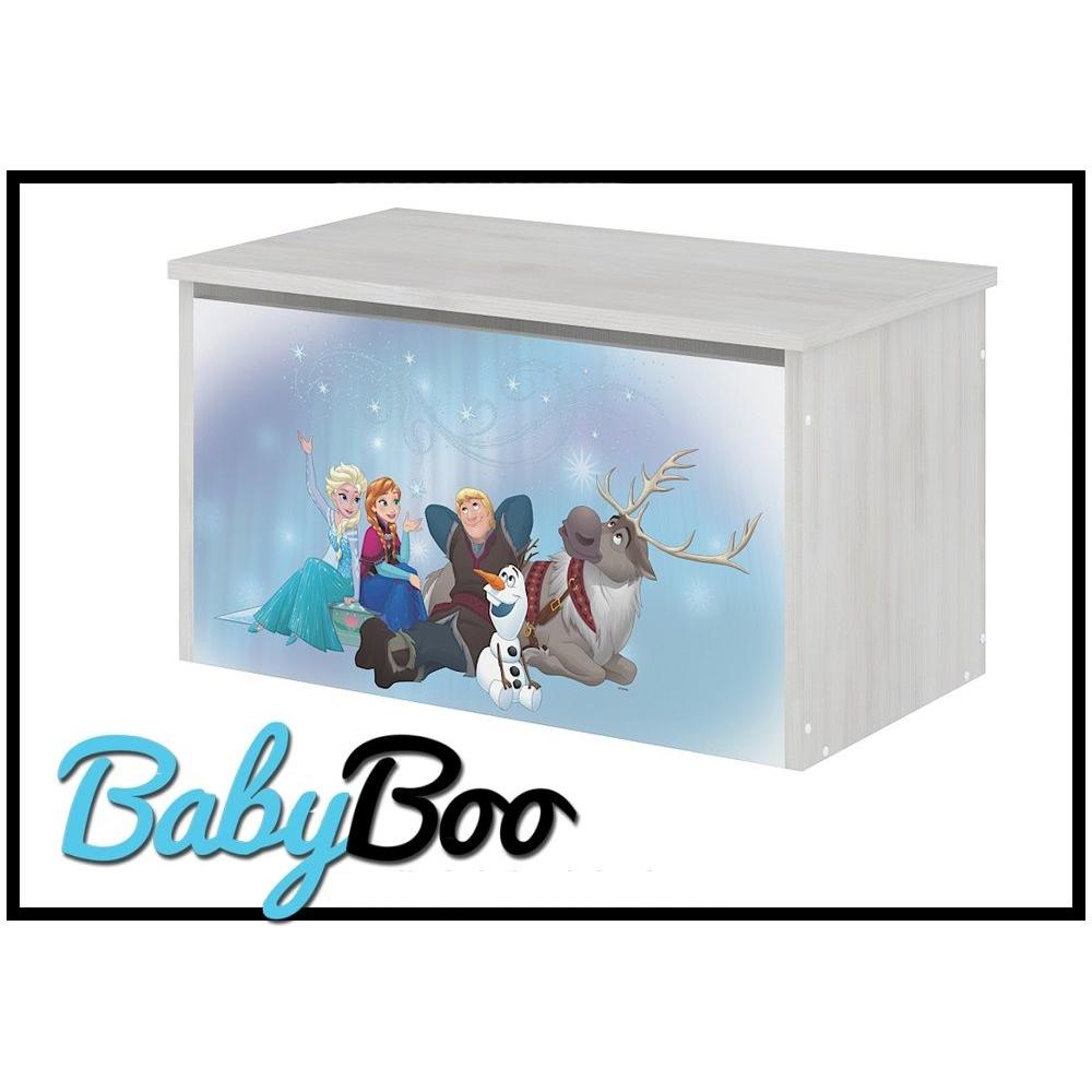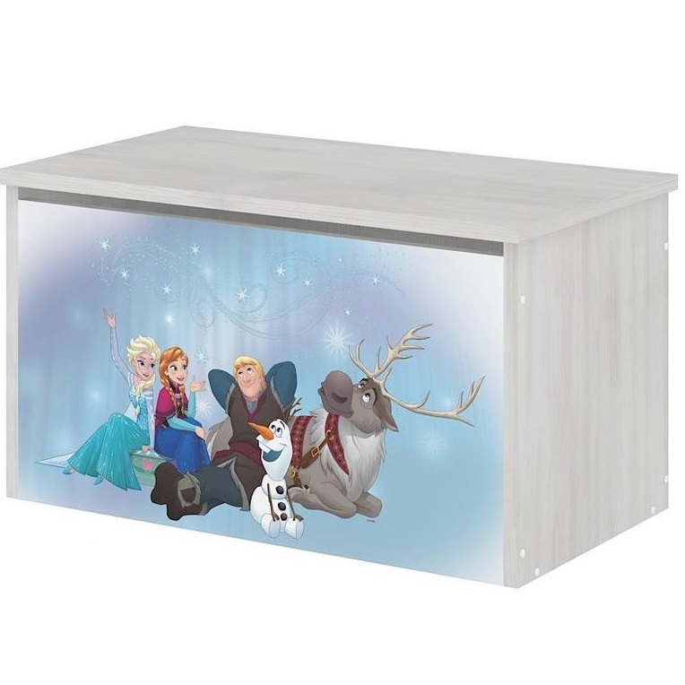 Detská drevená truhla Disney je vyrobená z kvalitných MDF dosiek vo farbe nórskej borovice s dyhou. Zatváranie je riešené hydraulickým systémom, ktorý zaisťuje pomalé a bezpečné sklápanie veka. Vymedzený voľný priestor medzi vekom truhly a jej čelom chráni detské prstíky proti možnému úrazu. Truhla má farebná potlač, ktorý je vyhotovený z ekologických farieb úplne bezpečných pre deti. Tlač má pekné sýte farby, ktoré sú zabezpečené špeciálnym laminátom s ochranou proti oderu. Detská truhla je ideálny nábytok na úschovu hračiek do izby.