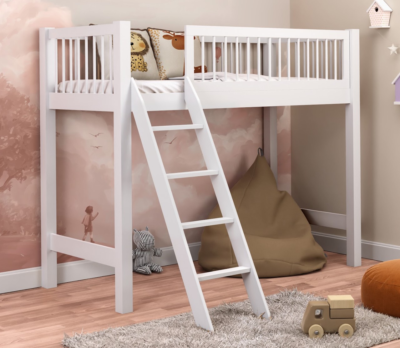 Detská vyvýšená posteľ EVI je perfektným riešením pre detskú izbu, ktoré kombinuje maximálne využitie priestoru, každodenné pohodlie a moderný, ale zároveň útulný dizajn. Vďaka vyvýšenému dizajnu získate ďalší priestor na hranie, štúdium alebo úložný priestor a vaše dieťa má svoju vlastnú jedinečnú zónu – malý svet len pre seba. Posteľ je vyrobená zo 100% prírodného borovicového dreva, ktoré je ošetrené tromi vrstvami ekologického laku. Výhodou dreva je jeho prirodzenosť a zdravá mikroklíma – borovica neobsahuje žiadne umelé plnivá a jej štruktúra podporuje lepšiu cirkuláciu vzduchu. Šikmý a stabilný rebrík uľahčuje bezpečný prístup do postele. Rebrík je univerzálny - je možné ho umiestniť na pravú aj ľavú stranu postele. Posteľ EVI prináša radosť a vzrušenie aj deťom. Spanie hore, lezenie po rebríku a vlastný „priestor“ premení každodenné ukladanie na spánok na dobrodružstvo. Tento kus nábytku stimuluje fantáziu, podporuje kreatívnu hru a dáva deťom pocit nezávislosti. Nie je to len posteľ - je to miesto, kde sa rodia detské sny, zábava a spomienky.