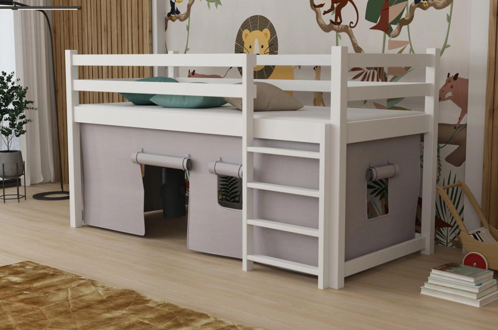 Detská vyvýšená posteľ PORTO je ideálnym riešením pre menšie deti. Vďaka vyvýšenej konštrukcii sa posteľ stáva nielen miestom na odpočinok, ale aj skrýšou a priestorom pre vaše obľúbené hry. Posteľ Porto má jednoduchú konštrukciu, ktorá svojim štýlom odkazuje na škandinávske interiéry, ale skvele zapadne do každého štýlu. Výber postele Porto je perfektným riešením najmä do malých priestorov . Vyvýšené poschodie umožňuje optimálne využitie dostupného priestoru a vytvára miesto na spanie na vyššej úrovni. To vám umožní ušetriť miesto pre ďalší nábytok a úžitkové priestory, ktoré je možné umiestniť pod posteľ. Posteľ Porto je vyrobená z masívneho borovicového dreva , vďaka čomu je konštrukcia odolná a stabilná a posteľ bezpečná pre dieťa. U bočníc a čiel je šírka použitého materiálu 2,6 cm . Pri výbere postele Porto sa nemusíte báť o bezpečnosť vášho dieťaťa, inštalované zábradlie je pevné a odolné a vaše dieťa bude pri spánku riadne chránené proti pádu. Posteľ je dodávaná s rebríkom , ktorého montáž je možná na pravú aj ľavú stranu postele. Široké nášľapy zaručujú jednoduchý prístup na lôžko. K posteli dostanete zadarmo šedý látkový záves , ktorý umožní vášmu dieťaťu vytvoriť si súkromie a úkryt na hranie a zábavu.