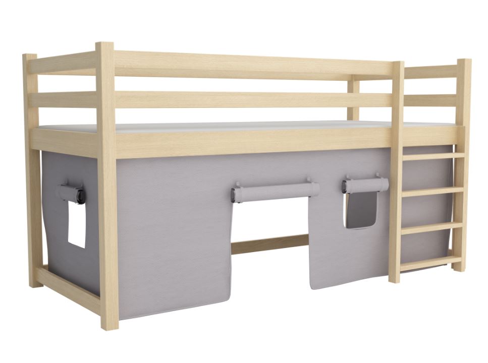 Detská vyvýšená posteľ PORTO je ideálnym riešením pre menšie deti. Vďaka vyvýšenej konštrukcii sa posteľ stáva nielen miestom na odpočinok, ale aj skrýšou a priestorom pre vaše obľúbené hry. Posteľ Porto má jednoduchú konštrukciu, ktorá svojim štýlom odkazuje na škandinávske interiéry, ale skvele zapadne do každého štýlu. Výber postele Porto je perfektným riešením najmä do malých priestorov . Vyvýšené poschodie umožňuje optimálne využitie dostupného priestoru a vytvára miesto na spanie na vyššej úrovni. To vám umožní ušetriť miesto pre ďalší nábytok a úžitkové priestory, ktoré je možné umiestniť pod posteľ. Posteľ Porto je vyrobená z masívneho borovicového dreva , vďaka čomu je konštrukcia odolná a stabilná a posteľ bezpečná pre dieťa. U bočníc a čiel je šírka použitého materiálu 2,6 cm . Pri výbere postele Porto sa nemusíte báť o bezpečnosť vášho dieťaťa, inštalované zábradlie je pevné a odolné a vaše dieťa bude pri spánku riadne chránené proti pádu. Posteľ je dodávaná s rebríkom , ktorého montáž je možná na pravú aj ľavú stranu postele. Široké nášľapy zaručujú jednoduchý prístup na lôžko. K posteli dostanete zadarmo šedý látkový záves , ktorý umožní vášmu dieťaťu vytvoriť si súkromie a úkryt na hranie a zábavu.