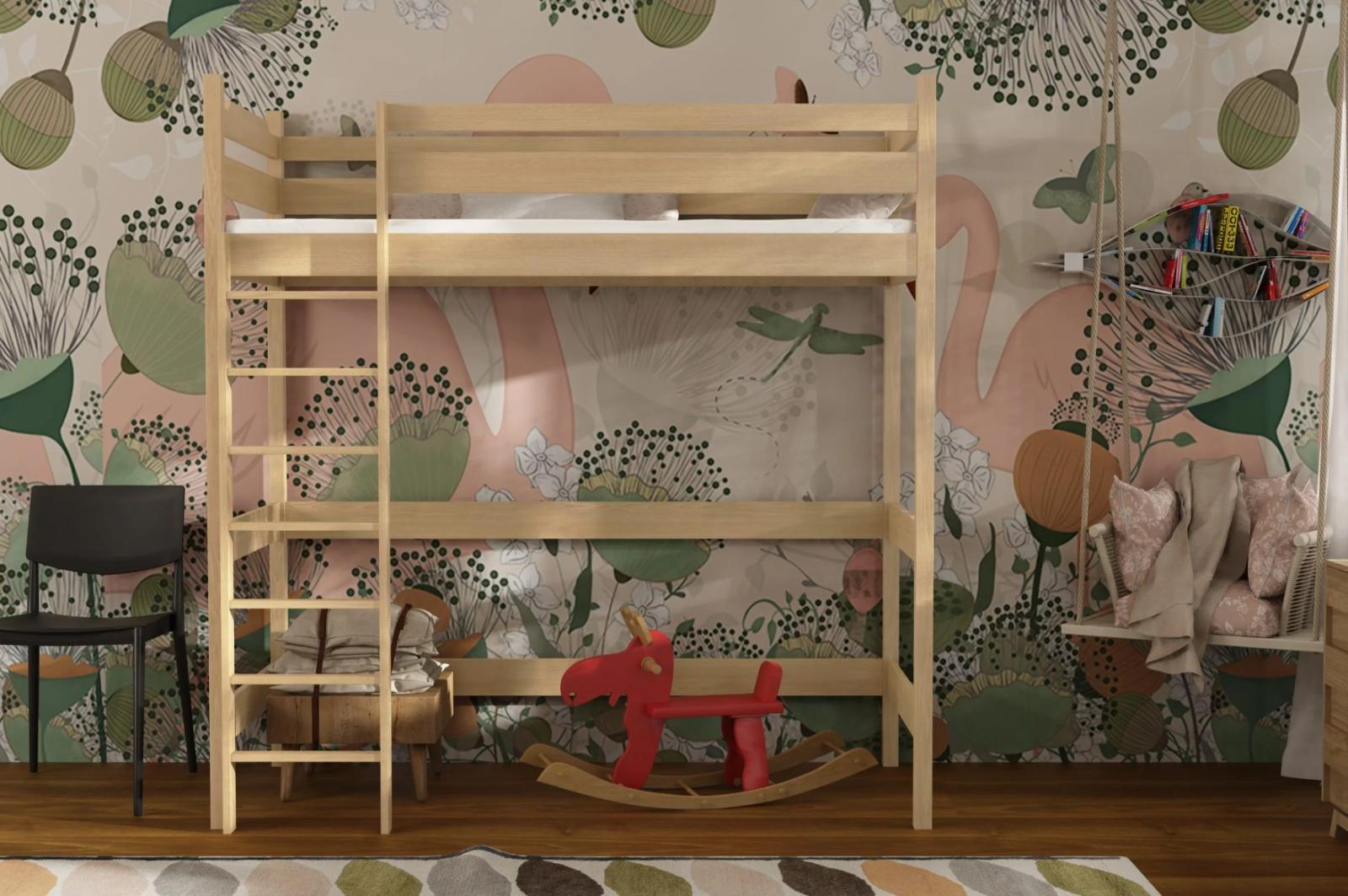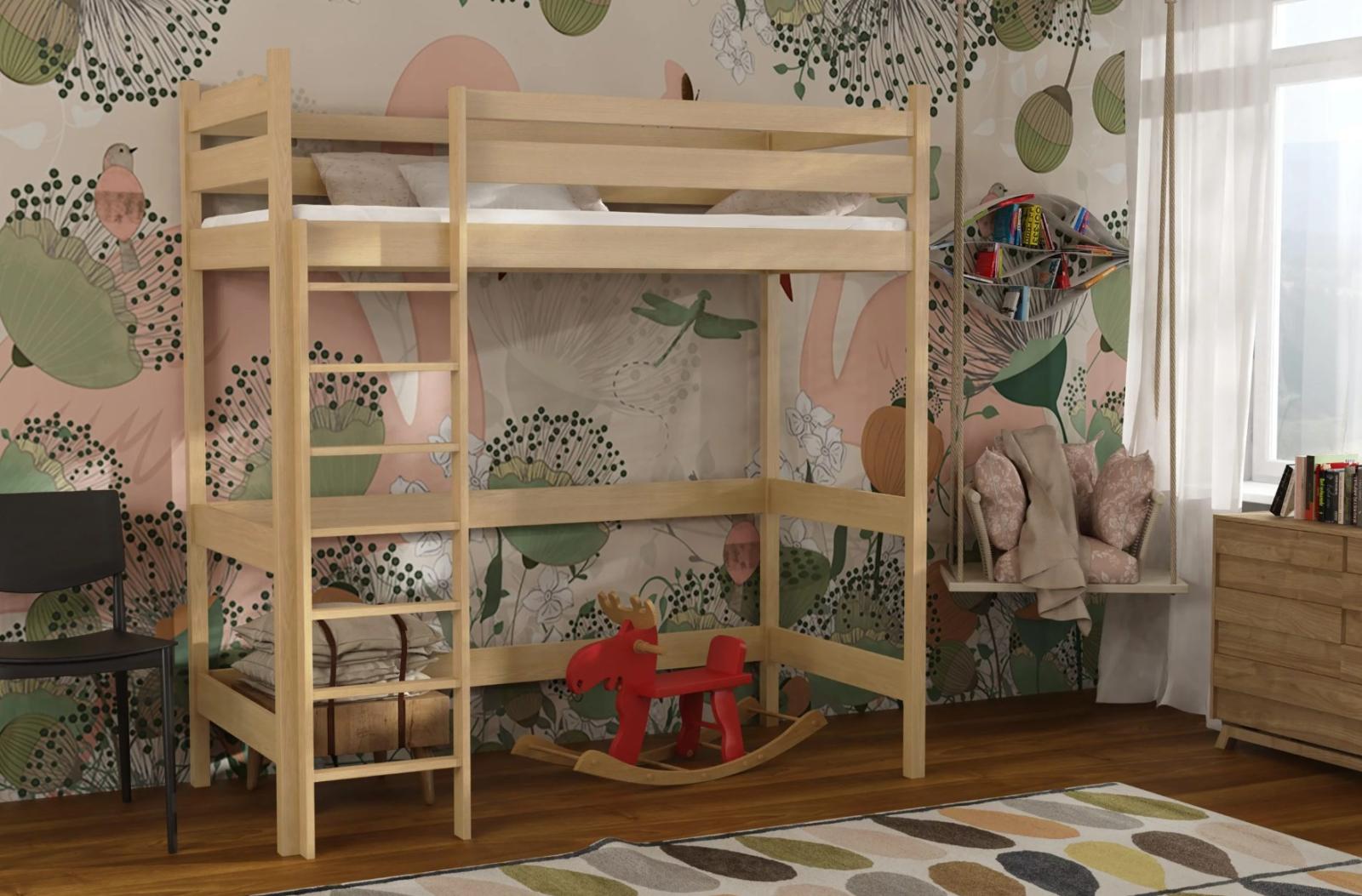 Detská vyvýšená posteľ z masívu borovice TEXAS - 200x90 cm - PRÍRODNÁ BOROVICA