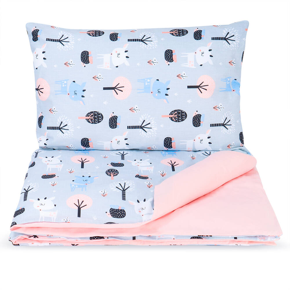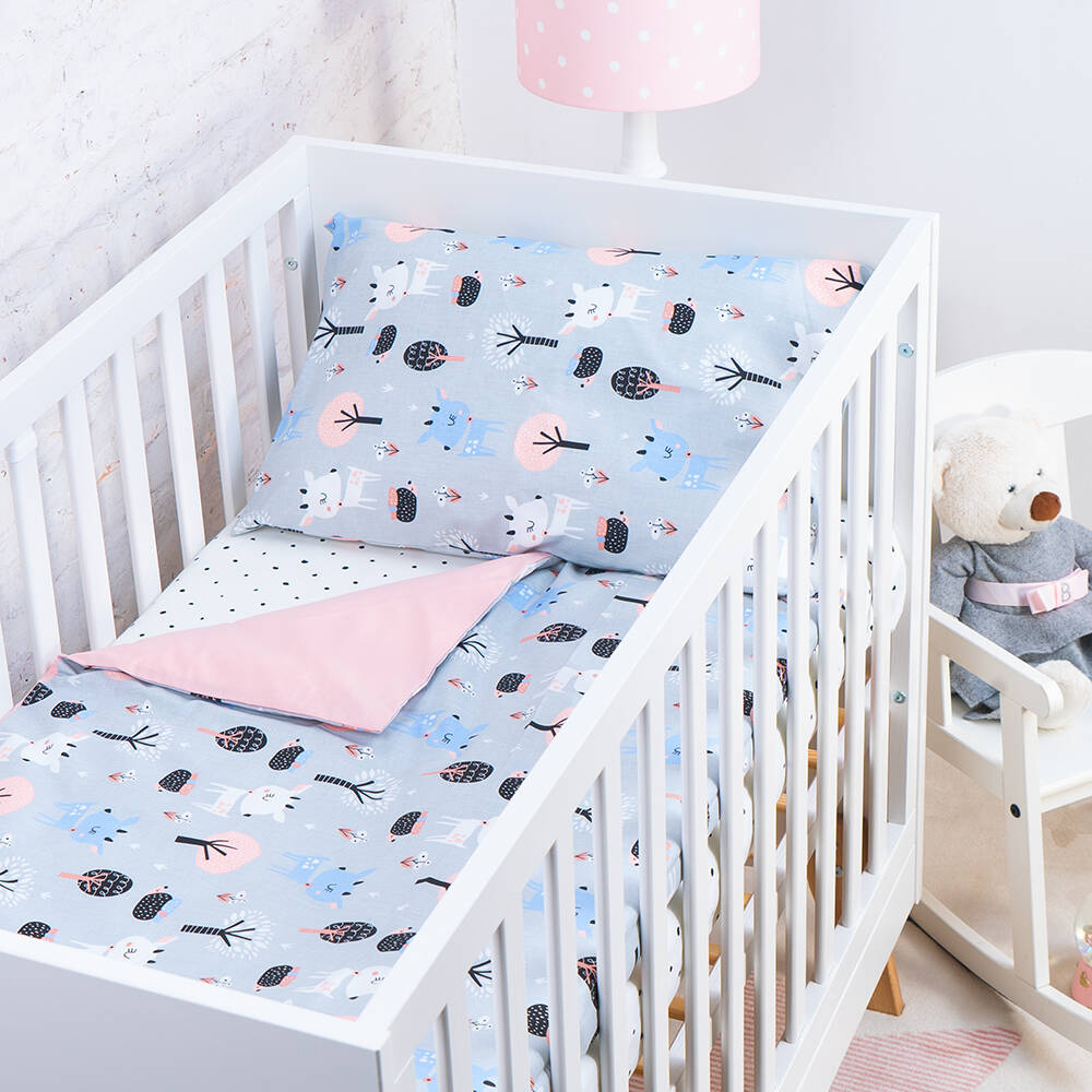 Detské bavlnené obliečky do postieľky 120x90 cm BABY - Zvieratká v lese / púdrová ružová