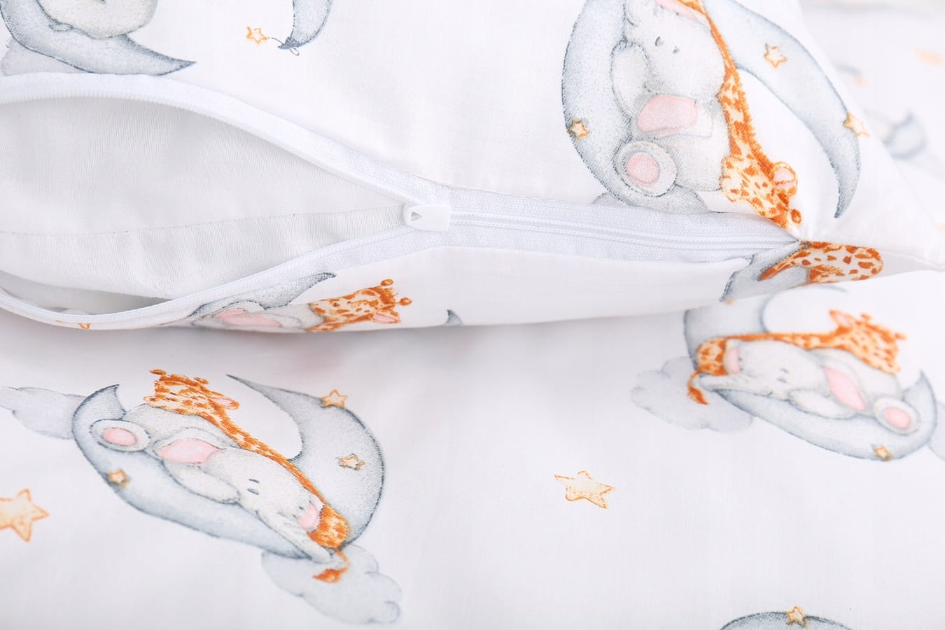 Nádherné detské bavlnené obliečky do postieľky s roztomilým detským motívom. Posteľná súprava je vyrobená z kvalitnej 100% bavlny , ktorá je certifikovaná a zodpovedá hygienickým požiadavkám pre deti do troch rokov OEKO-TEX Standard 100. Sada obliečok obsahuje 1ks obliečku na prikrývku 90x120cm a 1ks obliečku na vankúš 40x60cm s praktickým za zipsom . Obliečky sú veľmi príjemné na dotyk a nedrážajú jemnú detskú pokožku pri spánku. Materiál sa vyznačuje dlhou životnosťou, stálofarebnosťou a minimálnou krčivosťou. Posteľná bielizeň je jedným zo základných prvkov výbavičky každého dieťaťa. S našimi bavlnenými obliečkami PREMIUM si môžete byť istí, že ste pre svoje dieťa zvolili to najlepšie.