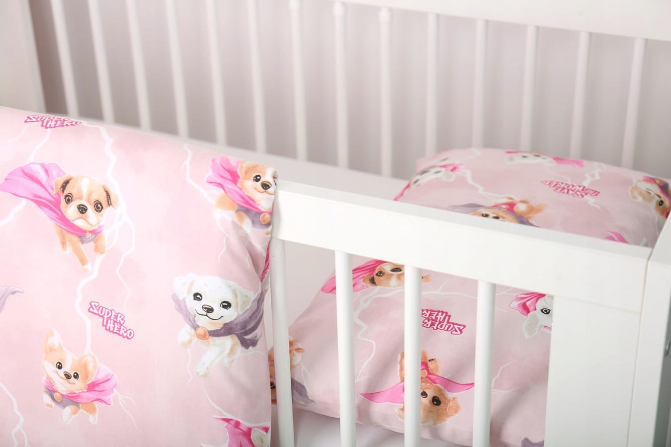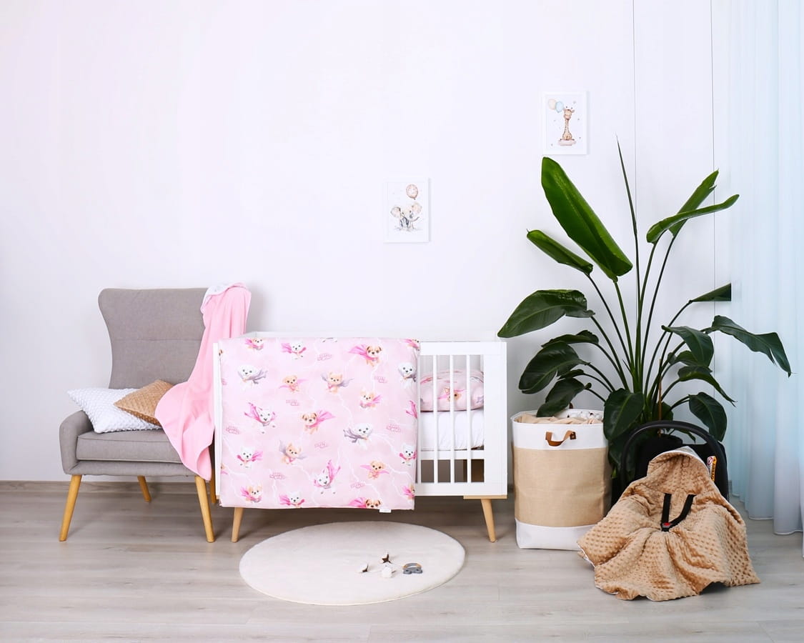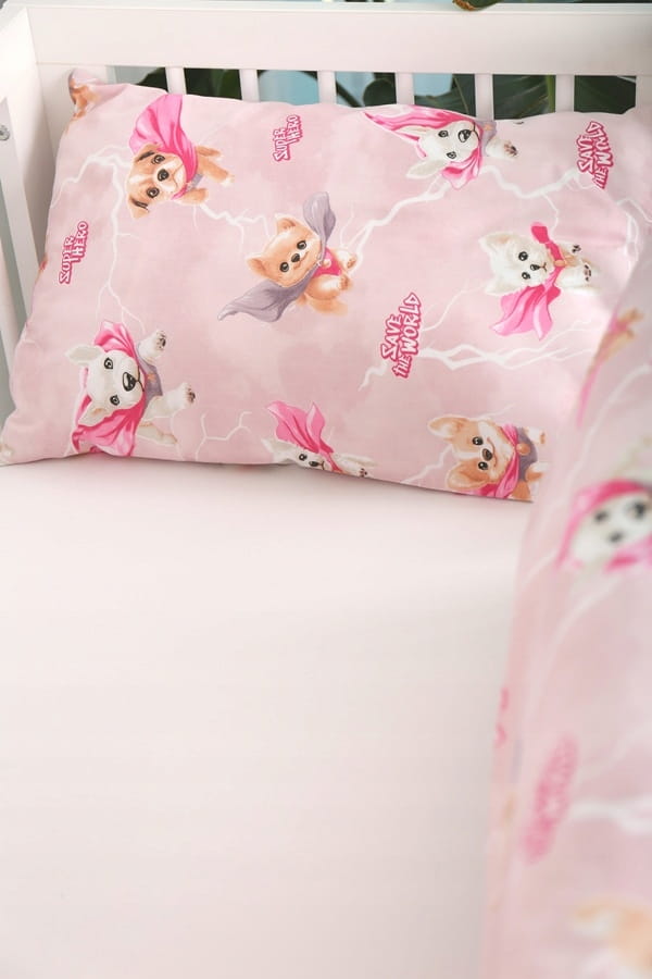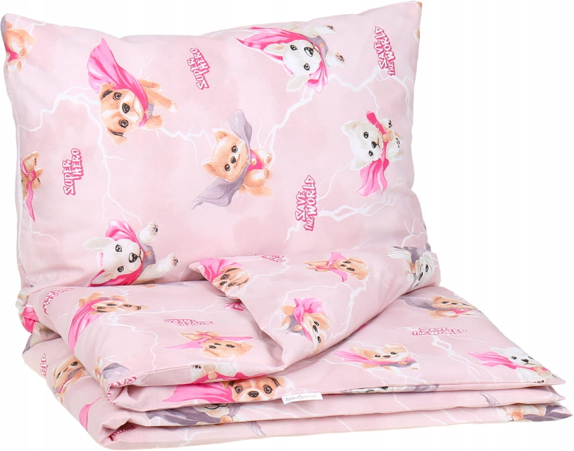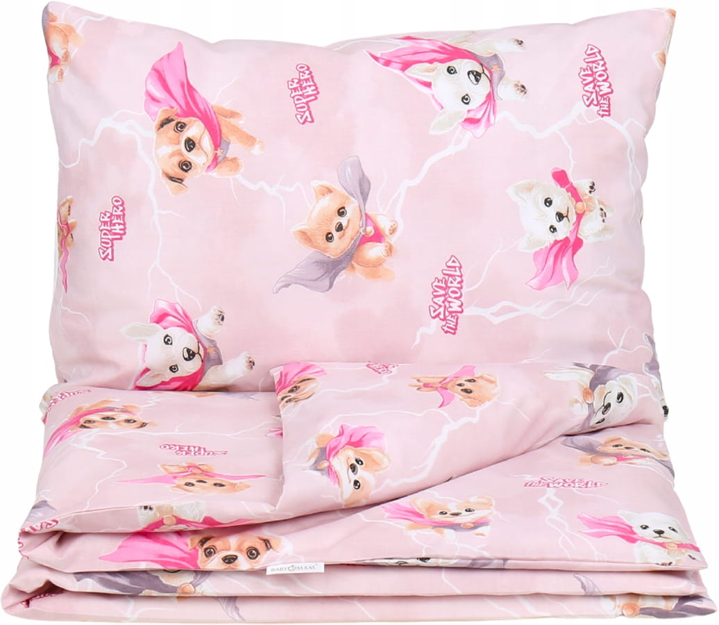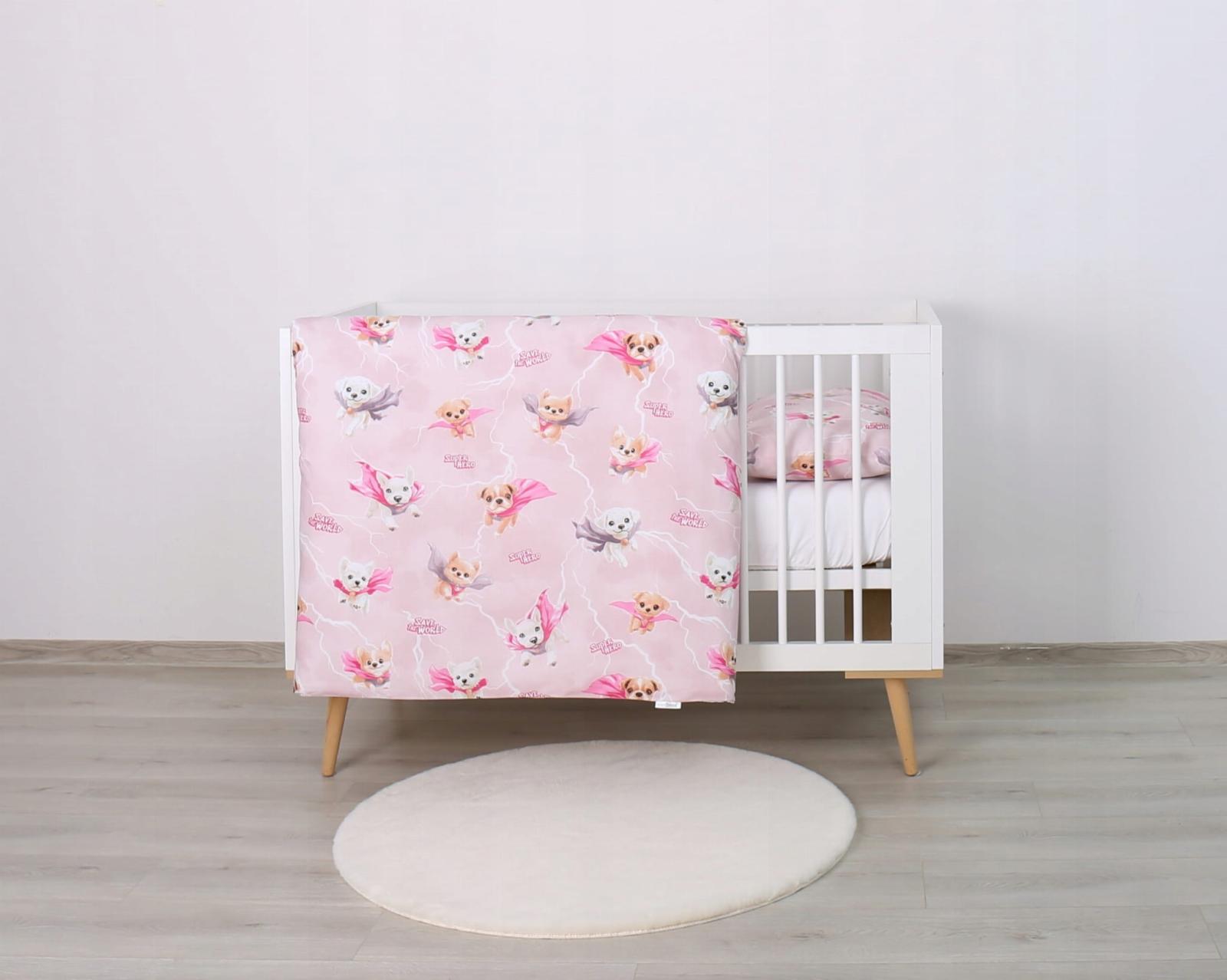 Detské bavlnené obliečky do postieľky 120x90 cm BABYMAM PREMIUM - Super psíci - ružové