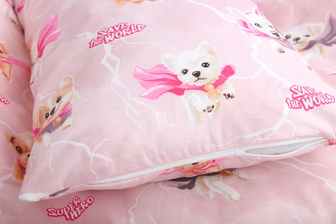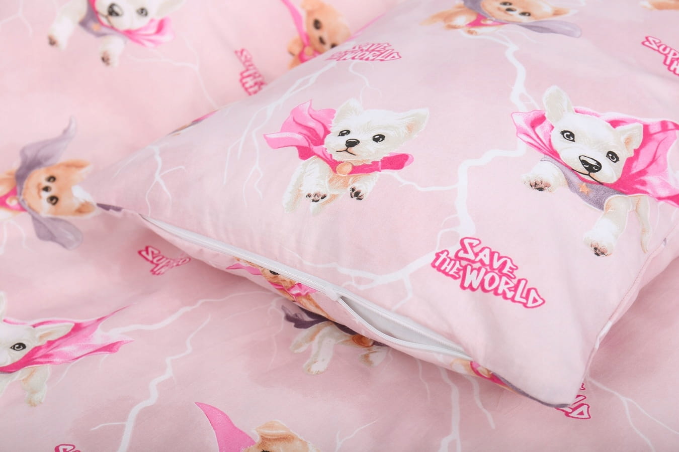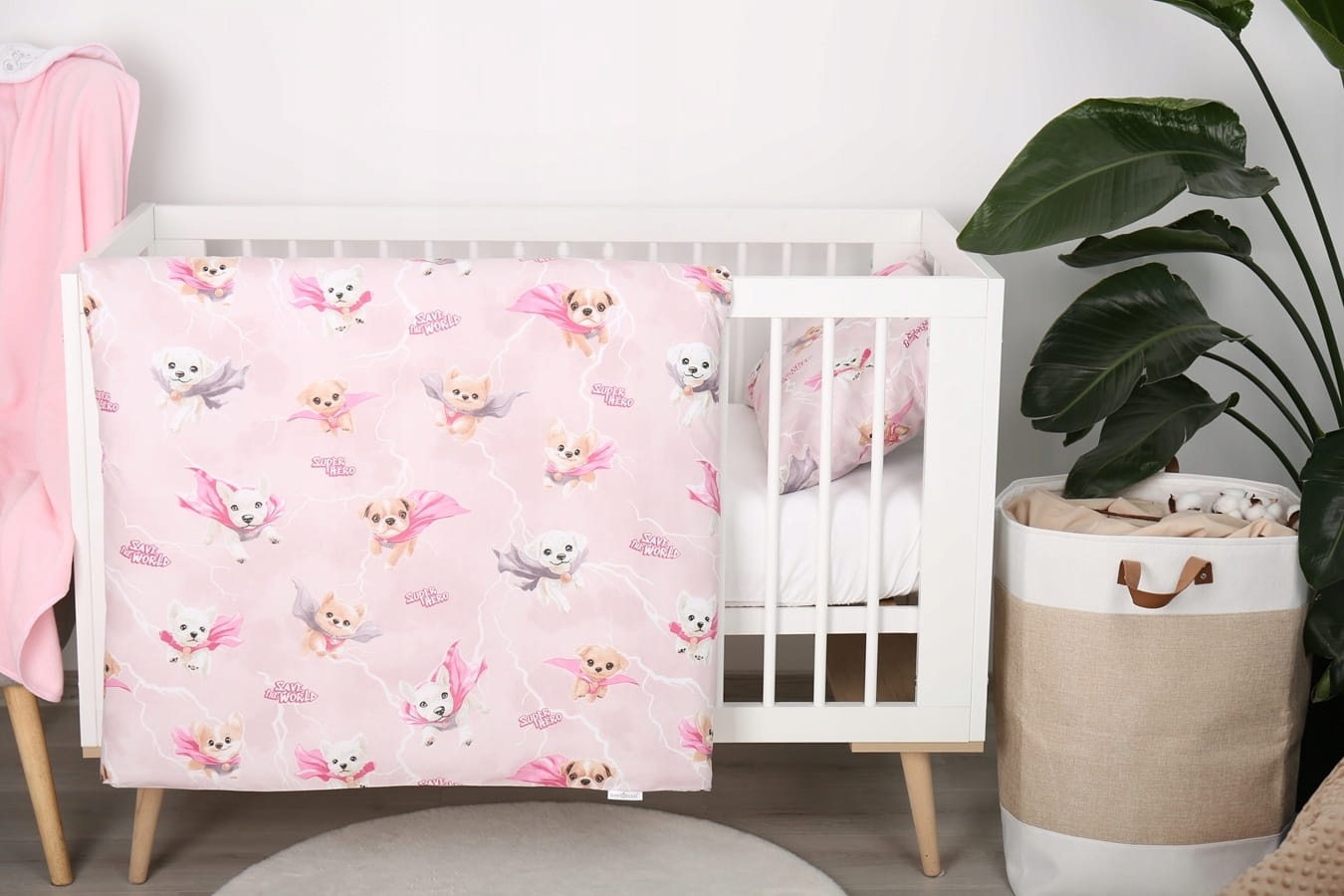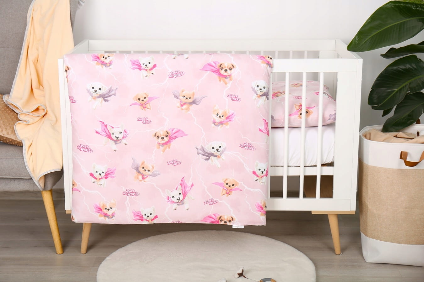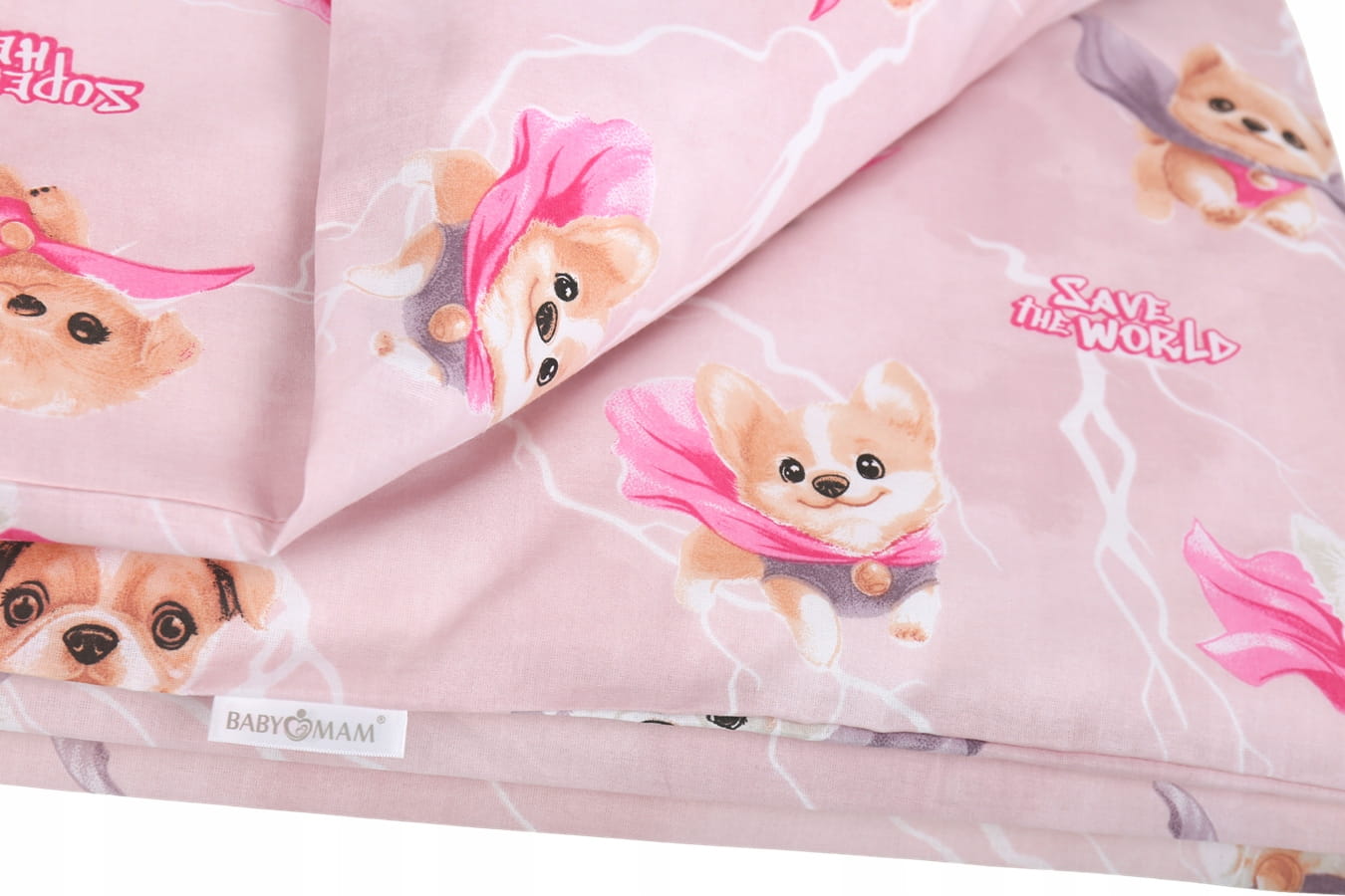 Detské bavlnené obliečky do postieľky 120x90 cm BABYMAM PREMIUM - Super psíci - ružové