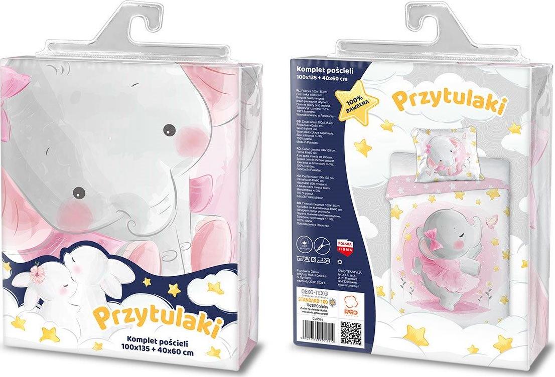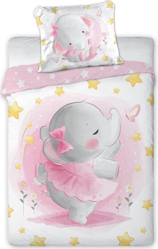 Detské bavlnené obliečky do postieľky 135x100 cm CUDDLES - Sloník - ružové