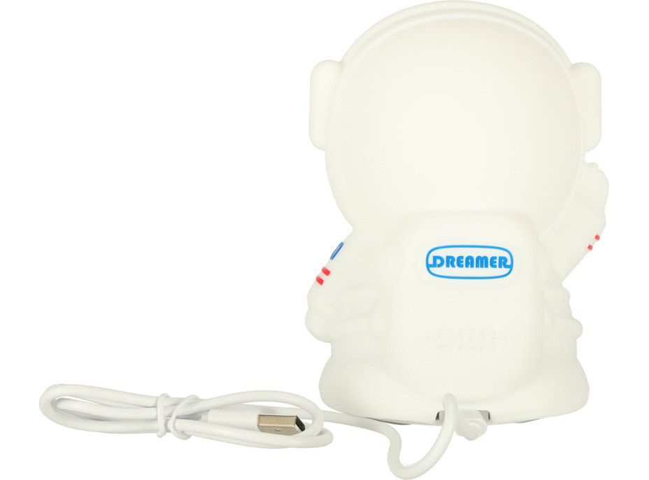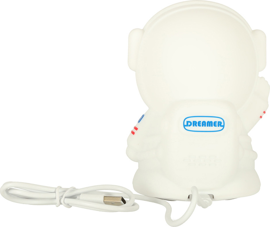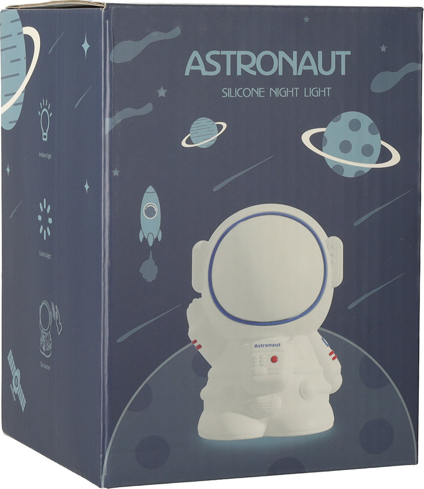 Nočná lampička v tvare astronauta sa určite stane spoľahlivým nočným spoločníkom. Jemne osvetlí tmavú izbu a umožní vášmu dieťatku pokojné zaspávanie bez obáv. Astronaut je sčasti vyrobený z pružného a na dotyk príjemného silikónu, takže sa s ním vaše dieťa môže vo chvíľach strachu maznať a hniesť ho podľa ľubovôle! Vstavaná dobíjacia batéria poskytuje pohodlie - raz ju nabijete a svetlo vydrží svietiť po mnoho nocí. Vďaka tomuto riešeniu si batoľa môže svojho nového kamaráta vziať kamkoľvek so sebou! Astronaut v noci rozžiari tmu a cez deň bude krásnou ozdobou detskej izby.