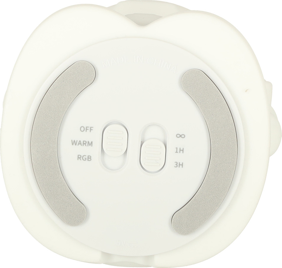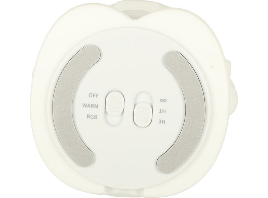 Lampička má dva režimy svietenia - stále svetlo v teplej bielej farbe, ktorého intenzitu je možné nastaviť, a farebné meniace sa svetlo RGB. Ak chcete prepínať medzi režimami alebo lampu vypnúť, stačí sa lampy dotknúť rukou alebo stlačiť príslušné tlačidlo na spodnej strane. Funkcia časovača sa vám bude hodiť najmä v noci, keď vaše dieťatko potrebuje trochu svetla na zaspanie a vy nechcete, aby lampička svietila celú noc.