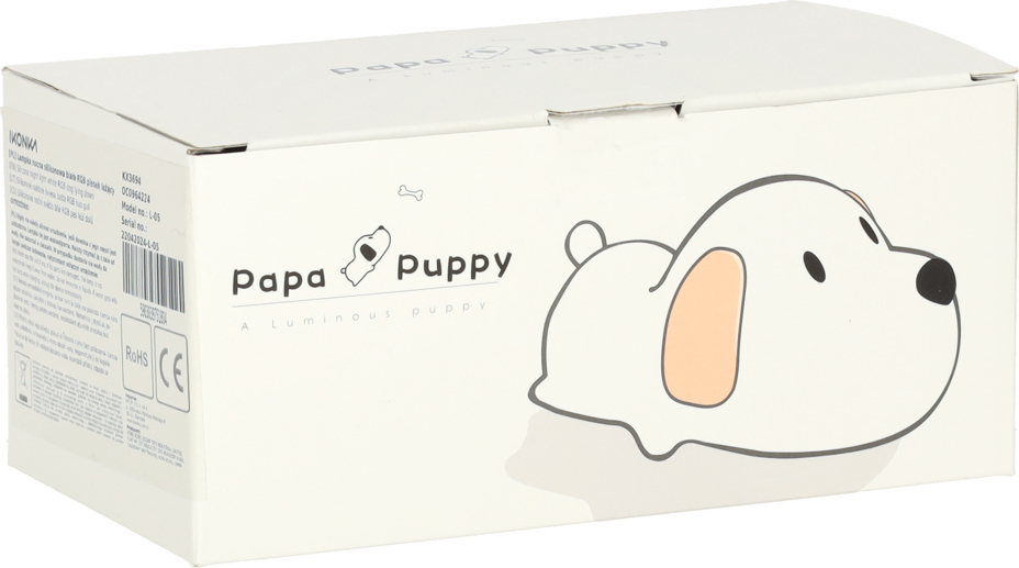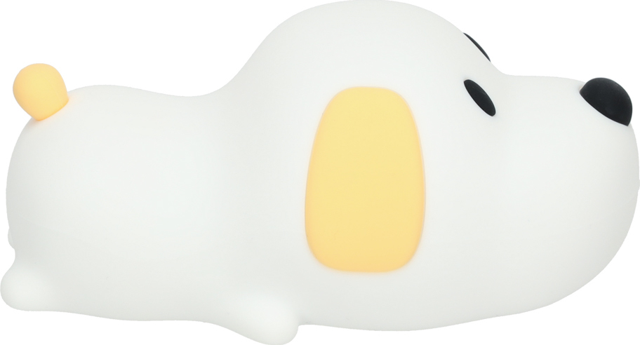 Toto nočné svetlo v tvare psa, vyrobené z mäkkého silikónu, jemne osvetlí detskú izbu. Je napájané batériou s kapacitou 1200 mAh (súčasťou balenia). Ponúka dva režimy svietenia (teplá biela a studená biela), ktoré vám umožňujú prispôsobiť svetlo vašim individuálnym preferenciám. Jas môžete upraviť pridržaním psa za ňufák. Je tiež vybavené 30-minútovým a 50-minútovým časovačom pre úsporu batérie. Súčasťou balenia je nabíjací kábel USB.