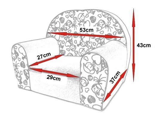 Nádherné detské kresielko. Kresielko je veľmi pohodlné, vyrobené z molitanové peny, diely sú k sebe trvale spojené, čo zaručuje dlhú životnosť kresielok. Na výrobu detských kresielok boli použité veľmi kvalitné certifikované materiály. Poťah kresielka je z kvalitnej bavlny, je odnímateľnú, môžete ho pohodlne vyprať pri teplote 30 ° C. Kresielko je veľmi pekné a praktické, môže dieťaťu slúžiť na hranie, kreslenie, pozeranie televízie a podobne. Kreslo neobsahuje žiadne tvrdé prvky, na ktorých by sa mohlo dieťa zraniť. Váha kresielka je cca 2,5 kg, dieťa s ním teda dokáže ľahko manipulovať samo.