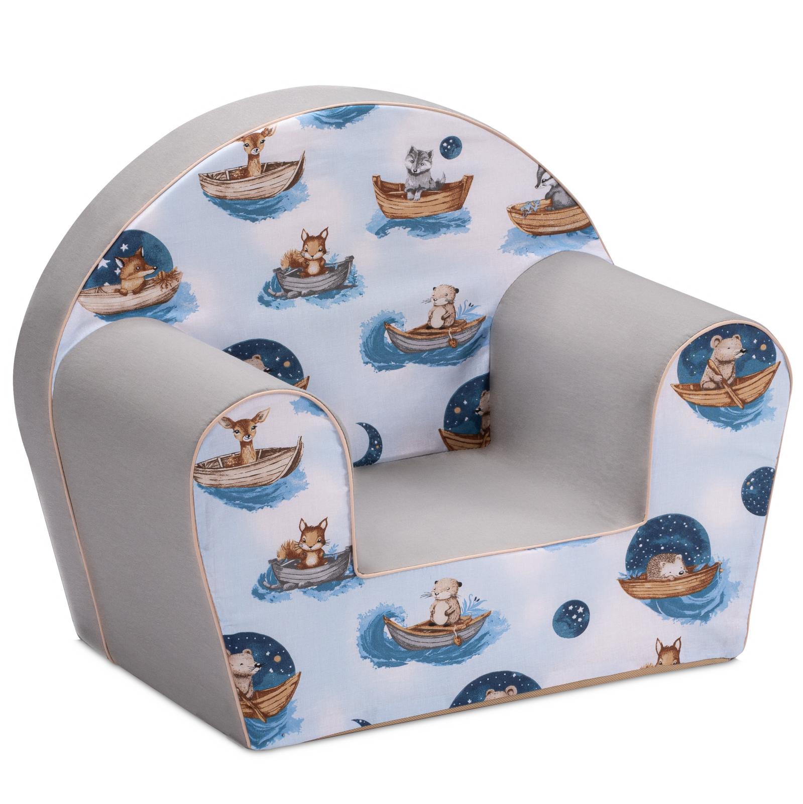 Detské kresielko MINI - Zvieratká na lodičkách - modré/šedé