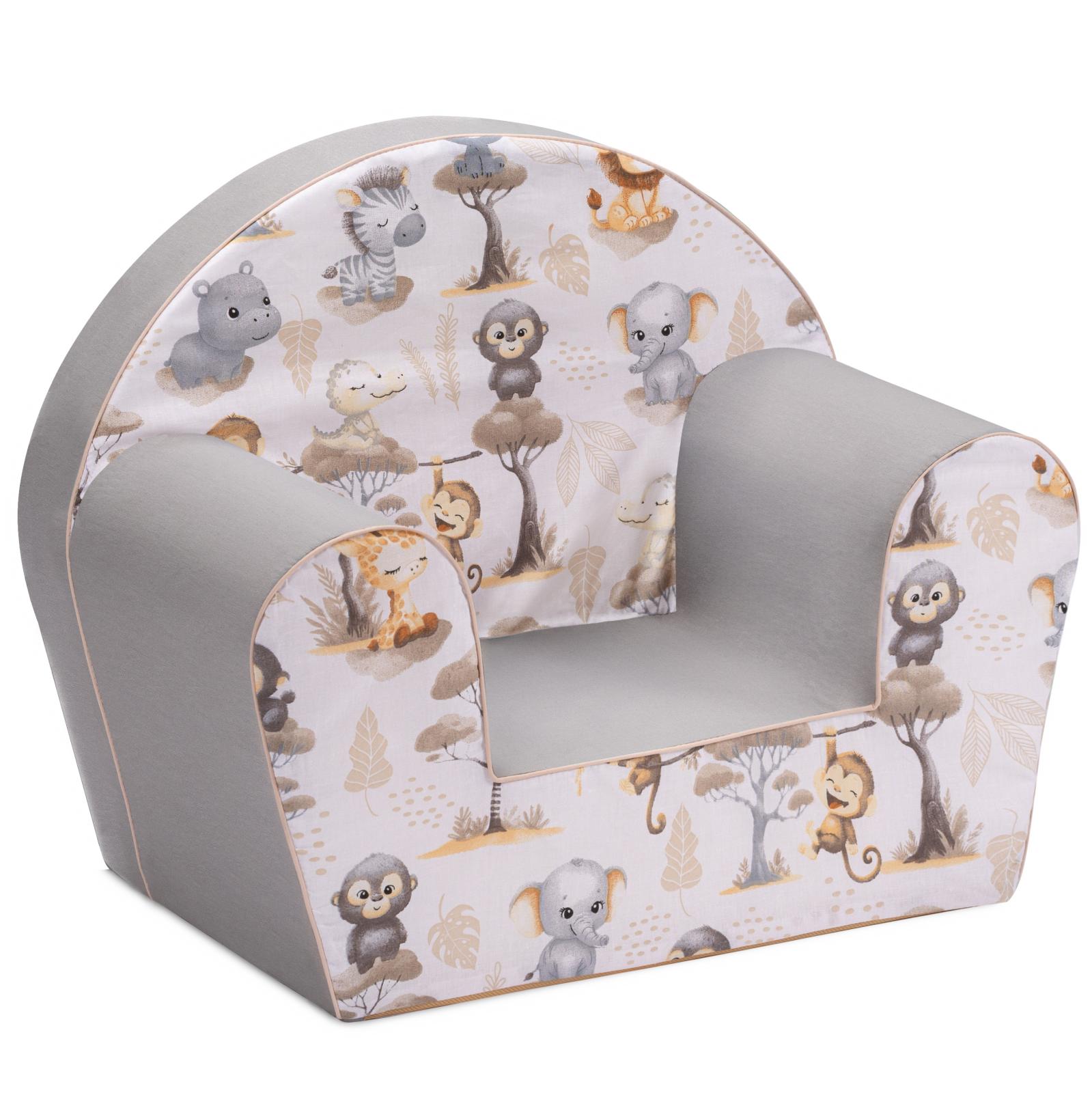 Detské kresielko MINI - Africké zvieratká - biele / šedé
