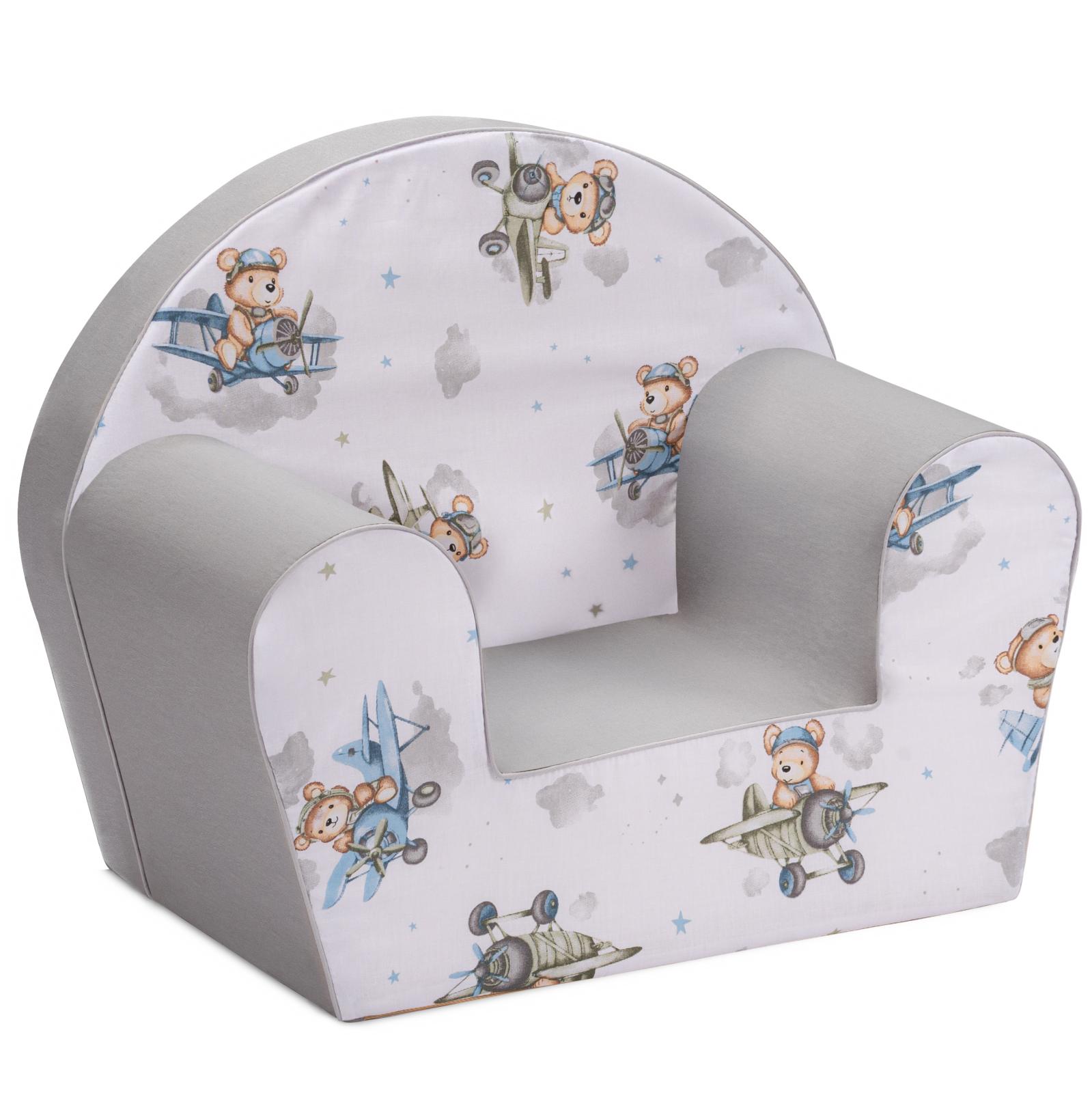 Detské kresielko MINI - Medvedík v lietadle - biele / šedé