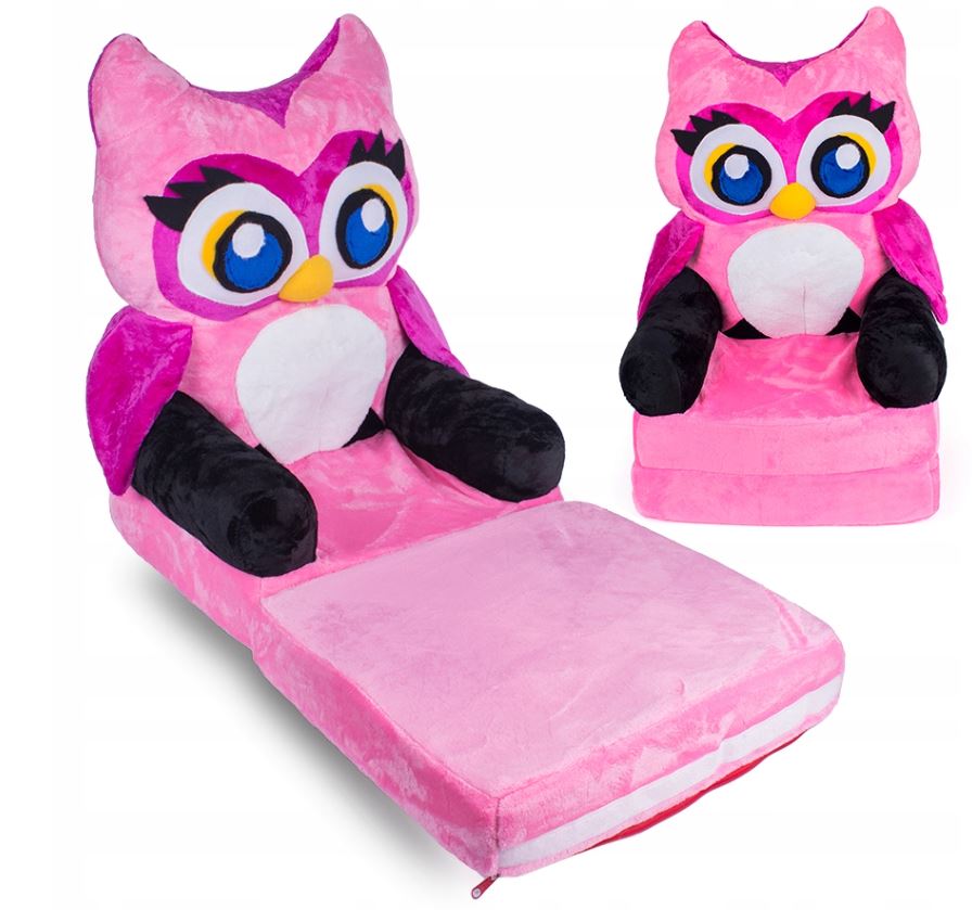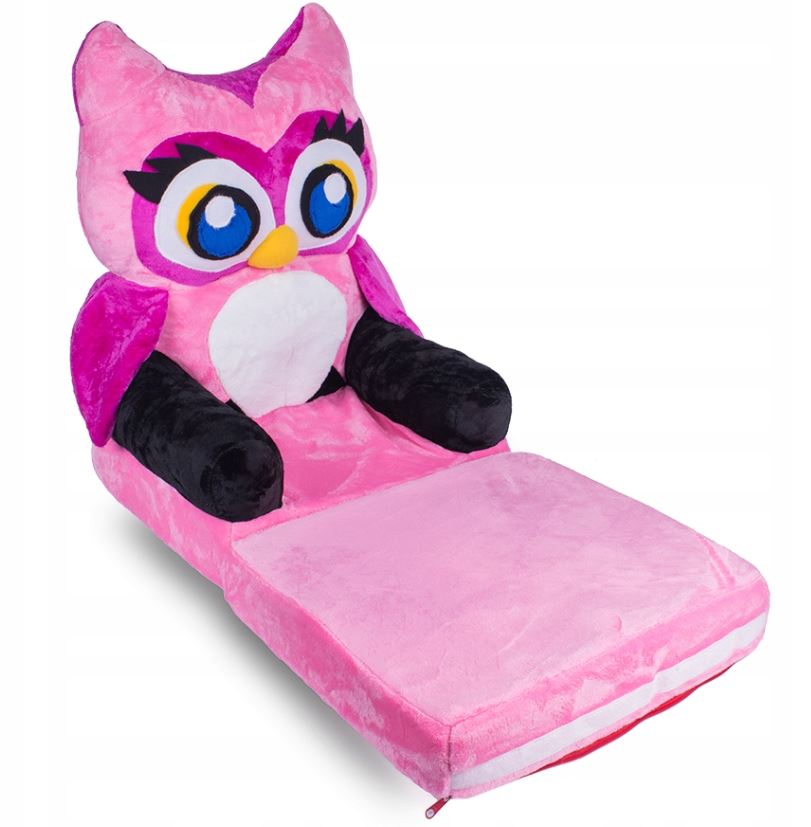 Detské plyšové rozkladacie kresielko SOVIČKA - ružové