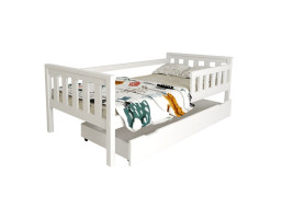 Detská posteľ z masívu SANDRA s prístelkou a šuplíky - 200x90 cm - BIELA